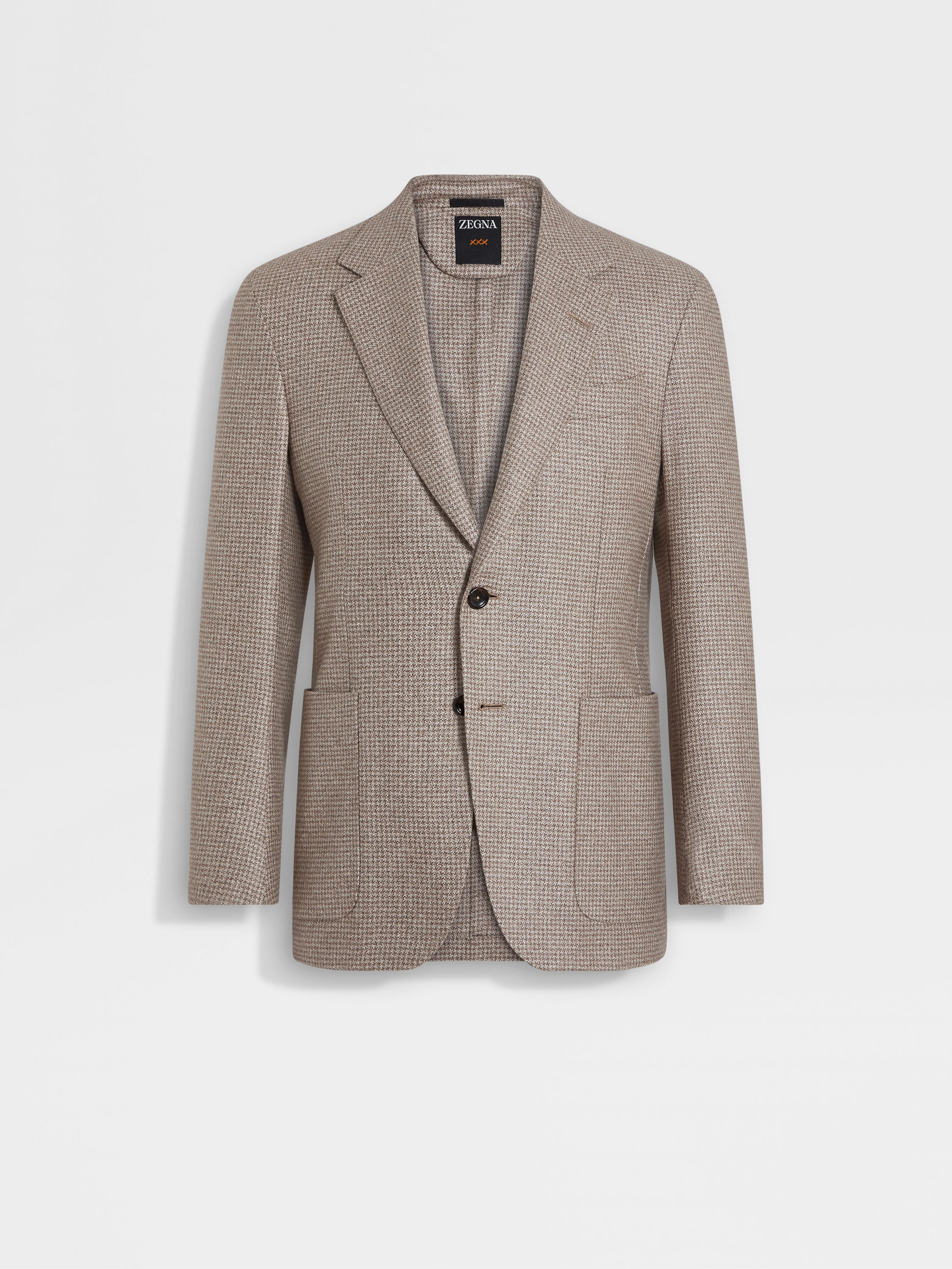 Soft to the touch and refined on the eye, this light beige and light taupe houndstooth jacket is made from a cashmere and silk blend. INFO Nothing says effortless luxury like a refined blend of cashmere and silk. Elevating smart ensembles with effortless finesse, this double-vent jacket boasts a timeless houndstooth motif in an understated light beige and light taupe palette. Left unlined and elevated with sleek notch lapels. PRODUCT CODE 259060A2-10JCN0 MATERIALS AND CARE 51% Mulberry Silk; 49% Cashmere Do not wash. Do not bleach. Do not tumble dry. Iron at max 110° C. Professional dry cleaning in tetrachloroethene and hydrocarbons, mild process. FIT AND PRODUCT DETAILS • Regular fit • Tailoring jacket • Double vents • Notch lapels • Houndstooth pattern • Button closure • Patch pockets • Deconstructed, canvas • Unlined • 75 cm length on size 48