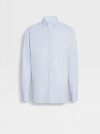 LIGHT BLUE AND WHITE MICRO-CHECKED 300 COTTON SHIRT