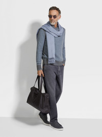 Made from ZEGNA's Oasi Cashmere, this light blue crewneck is synonymous with luxury leisurewear. INFO This light blue jacquard sweater elevates a classic crewneck silhouette with the beauty of ZEGNA's Oasi Cashmere. A vanise knit hem and collar add a charming touch. PRODUCT CODE UGK65A2-110-100 MATERIALS AND CARE 100% Cashmere The inspiration behind this Oasi Cashmere collection garment was born in Oasi Zegna, a 100km² natural territory and the home of our values. It's crafted from Oasi Cashmere fibres, made with 100% certified traceable fibres. The Oasi Cashmere collection follows in the footsteps of our Founder, who envisioned a vertically integrated system of producing textiles. Wash by hand. Do not bleach. Do not tumble dry. Flat drying. Iron at max 110°C. Professional dry cleaning in hydrocarbons, mild process. Wash and iron inside out. FIT AND PRODUCT DETAILS • Regular fit • 12 gauge • Ribbed crewneck collar • Long sleeves • Ribbed hem and cuffs • Vanise knit hem and collar • Jacquard pattern