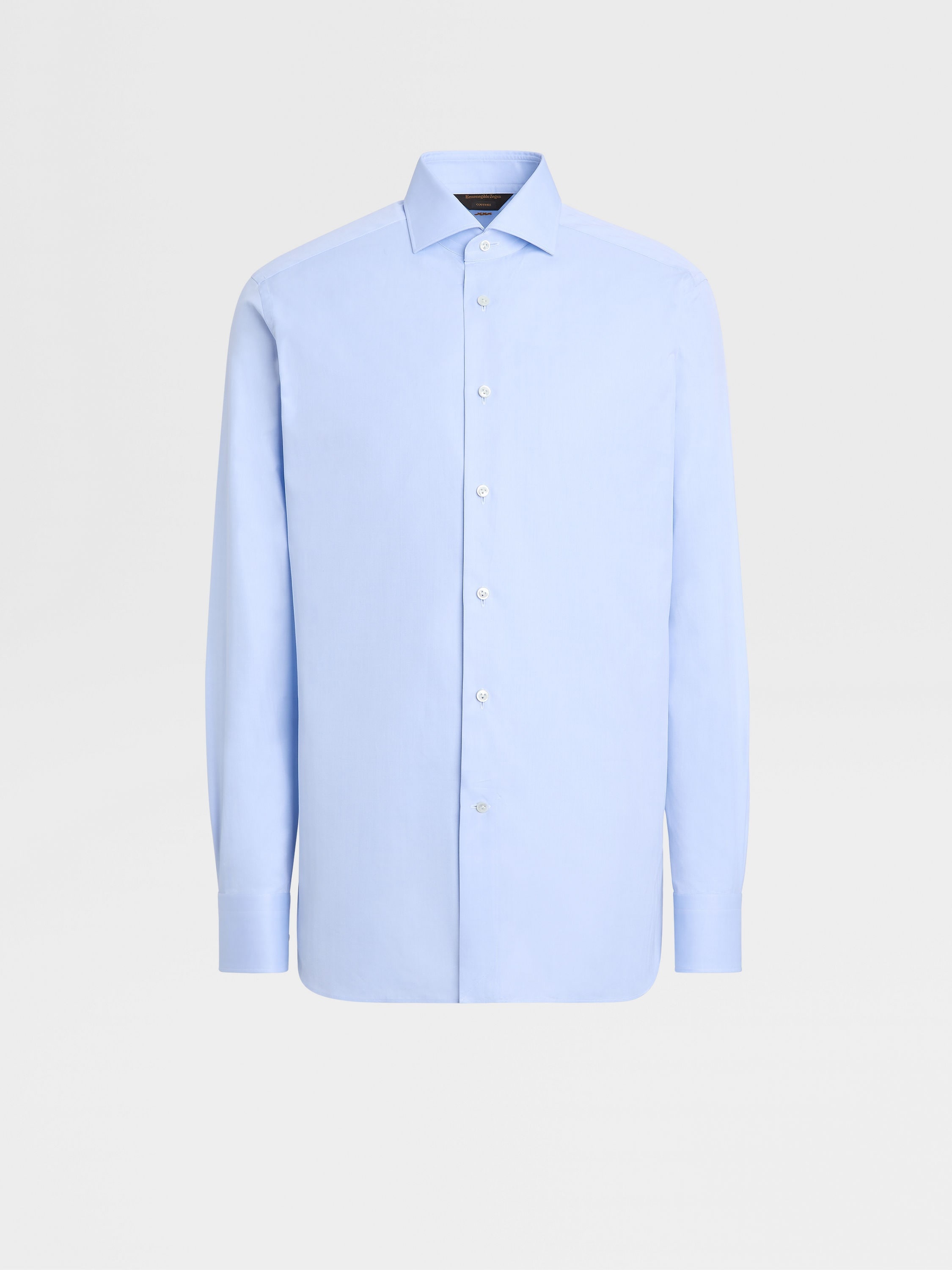 The light blue Sea Island cotton tailoring shirt complements formal ensembles. INFO Made from remarkably bright Sea Island cotton, the long-sleeve light blue tailoring shirt stays crisp and resilient, wear after wear. This wardrobe staple is an elegant way to enjoy the comfort of pure cotton. PRODUCT CODE C02301-9NS0LB MATERIALS AND CARE 100% Cotton Machine wash, warm (40°C / 105°F) or dry clean. Do not bleach. Do not tumble dry. Regular ironing, steam or dry, may be performed at medium setting (150°C / 300°F). FIT AND PRODUCT DETAILS • Regular fit • French collar • Standard cuffs • Round bottom • 79cm length on size 39
