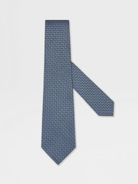 This light blue geometric tie is crafted from pure mulberry silk. INFO Pure mulberry silk in a light blue hue provides a sumptuous backdrop for an elegant geometric pattern: this jacquard tie makes a refined addition to office and evening ensembles alike. PRODUCT CODE Z9C17TA9-1PC-BL3 MATERIALS AND CARE Main body: 100% Mulberry Silk Lining: 100% Mulberry Silk Do not wash. Do not bleach. Do not tumble dry. Do not iron. Professional dry cleaning in tetrachloroethene and hydrocarbons, mild process. FIT AND PRODUCT DETAILS • Blade width: 8 cm / 3.1 in • Geometric jacquard pattern • Made in Italy