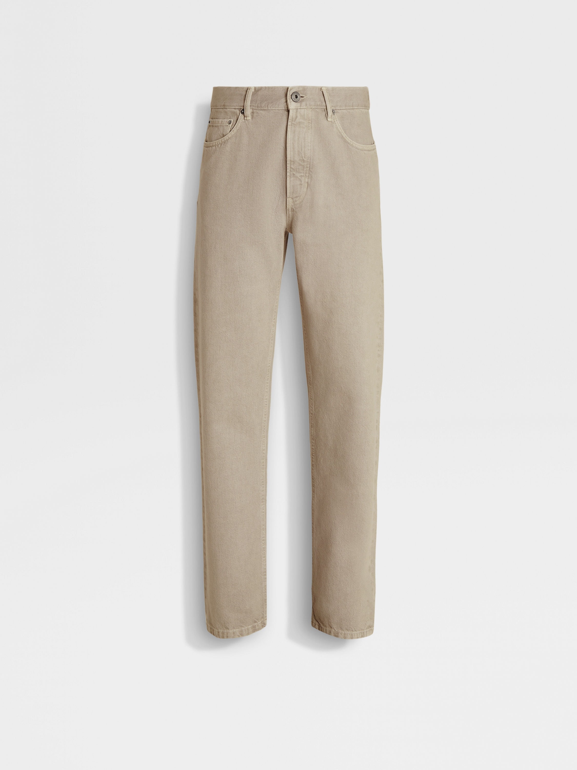 LIGHT TAUPE COTTON ROCCIA JEANS