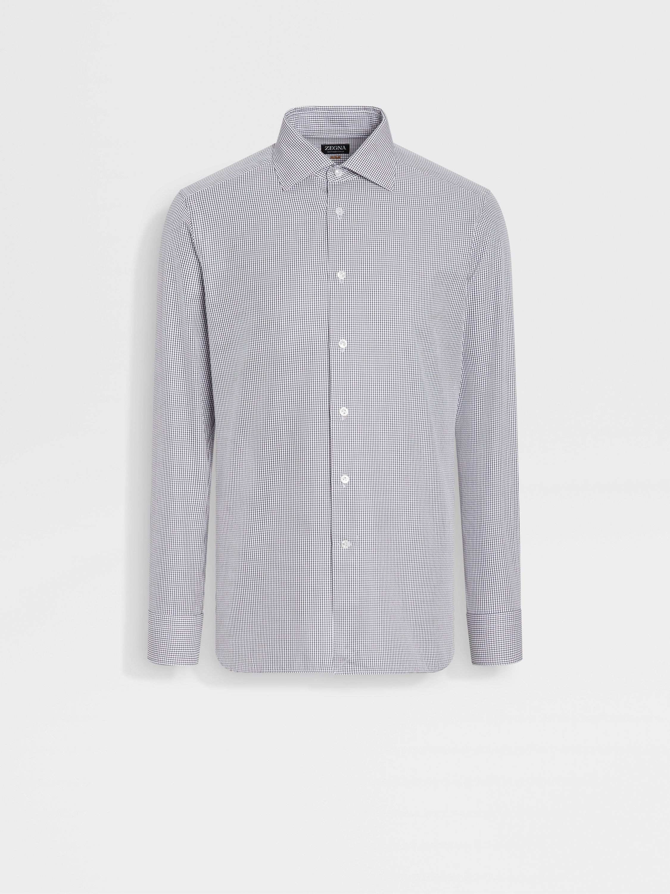 Featuring a navy blue and white checked pattern, this Centoventimila cotton long-sleeve shirt is a sartorial staple. INFO This elegant navy blue and white checked shirt is made from ZEGNA's Centoventimila cotton for a super-smooth, lightweight feel against the skin. Styled with long sleeves, a spread collar and standard cuffs. PRODUCT CODE 202113A2-9NS0LB MATERIALS AND CARE 100% Cotton Centoventimila – Italian for 120,000 – is named after its high thread count. Garments crafted from this fabric are extremely lightweight and have a soft, silk-inspired hand feel. Max washing temp 40°C. Do not bleach. Do not tumble dry. Iron at max 150°C. Professional dry cleaning in tetrachloroethene and hydrocarbons. FIT AND PRODUCT DETAILS • Regular fit • Tailoring shirt • Spread collar • Standard cuffs • Button closure • Checked pattern • 79 cm length on size 39