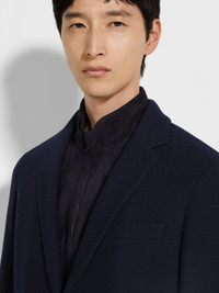 NAVY BLUE HIGH PERFORMANCE™ JERSEY WOOL AND COTTON JACKET