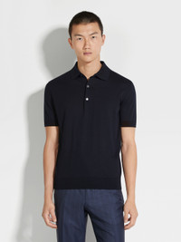 The navy blue Premium Cotton polo shirt is made from specially selected, extra-long cotton fibers. INFO Thanks to its superior comfort and durability, the navy blue Premium Cotton polo shirt's finely knit material is the perfect choice for elevated casualwear. The sporty, short-sleeve polo shirt is presented in a contemporary colorway and framed with the classic ribbed trims. PRODUCT CODE E8C90A7-C32-B09 MATERIALS AND CARE 100% Cotton Only long-staple fibres are used to create the Premium Cotton yarns of this garment, imbuing it with strength, softness and durability — ideal for bringing a luxurious feel to everyday looks. Wash by hand. Do not bleach. Do not tumble dry. Flat drying. Iron at max 110°C. Professional dry cleaning in hydrocarbons, mild process. Wash and iron inside out. FIT AND PRODUCT DETAILS • 18 gauge • Polo collar • Short sleeves • Ribbed hem and cuffs • Button closure • Regular fit • Model is 188 cm tall (6.2 feet) and wears an Italian size 48.