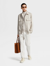 The white Oasi Cashmere Alba overshirt transforms a relaxed design with luxury materials. INFO Showcasing Zegna's uncompromising approach to natural materials, the white Oasi Cashmere Alba overshirt carries the brand's legacy of fine craftsmanship into a new era. The exceptionally soft quality of the cashmere elevates the informal design, which is completed with elbow patches and flap pockets. The inspiration for the iconic Alba Overshirt, Alba the Italian word for 'Sunrise', was Born in Oasi Zegna, the home of our values in the Italian Alps. It's crafted from Oasi Cashmere fibres, which ZEGNA commits to certifying as traceable from 2024. Wear it from dawn to dusk as either a shirt or lightweight jacket. PRODUCT CODE E8V46-SOT6-926 MATERIALS AND CARE Main body: 100% Cashmere Lining: 100% Polyester This Oasi Cashmere Collection garment was Born in Oasi Zegna, our 100km² natural territory and the home of our values. Crafted from cashmere of uncompromising quality and softness, the Oasi Cashmere Collection follows in the footsteps of our founder, who envisioned a vertically integrated system of producing textiles. Do not wash. Do not bleach. Do not tumble dry. Iron at max 110°C. Professional dry cleaning in tetrachloroethene and hydrocarbons, mild process. FIT AND PRODUCT DETAILS • Regular fit • Shirt collar • Button closure • Straight hem • Smooth shirt cuffs • Elbow patches • Chest flap pockets • 73 cm length on size 48