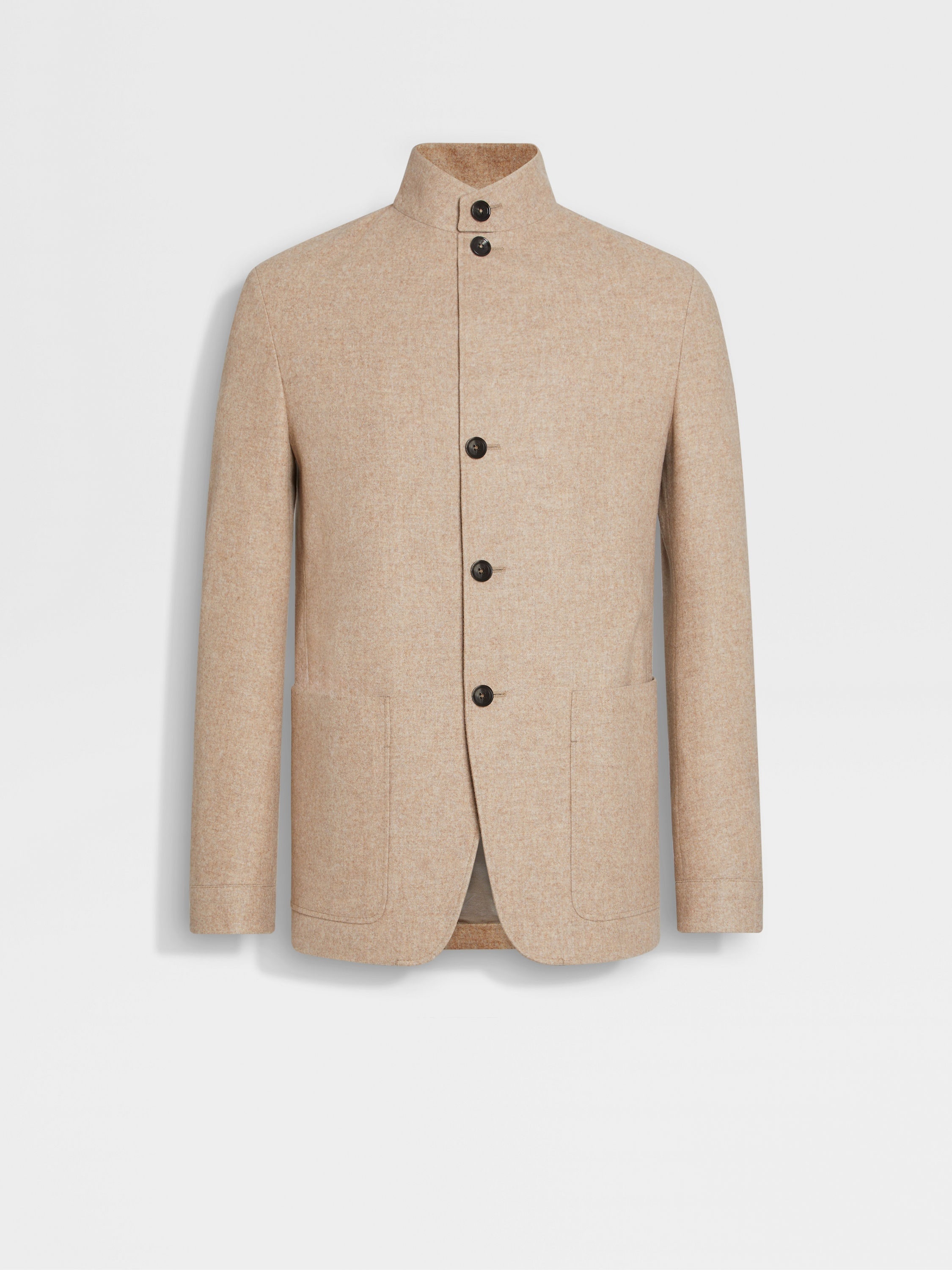 The light taupe multimelange Oasi Cashmere Il Conte chore jacket is crafted from Zegna's exclusive cashmere fibers. INFO The light taupe multimelange Oasi Cashmere Il Conte chore jacket is crafted from specially selected fibers. This functional, versatile design is topped off with a guru collar. A leather mini pocket on the right side and the leather Zegna 232 Road Brand Mark on the back sign off the look. Il Conte jacket pays homage to our Founder, Ermenegildo Zegna. He was bestowed the noble title of Count of Monte Rubello for the legacy he created as an entrepreneur, philanthropist and businessman. PRODUCT CODE 869C58A8-1VHKQ0 MATERIALS AND CARE Main body: 100% Cashmere Leather details: Calfskin The inspiration behind this Oasi Cashmere Collection garment was Born in Oasi Zegna, our 100km² natural territory and the home of our values. It's crafted from Oasi Cashmere fibres, which ZEGNA commits to certifying as traceable from 2024. The Oasi Cashmere Collection follows in the footsteps of our founder, who envisioned a vertically integrated system of producing textiles. Do not wash. Do not bleach. Do not tumble dry. Iron at max 110°C. Professional dry cleaning in tetrachloroethene and hydrocarbons, mild process. FIT AND PRODUCT DETAILS • Regular fit • Tailoring chore jacket • Single vent • Guru collar • Button closure • Leather Zegna 232 Road Brand Mark on the back • Patch pockets • Leather mini pocket in the right pocket • Half-lined • Deconstructed, fused • 73 cm length on size 48