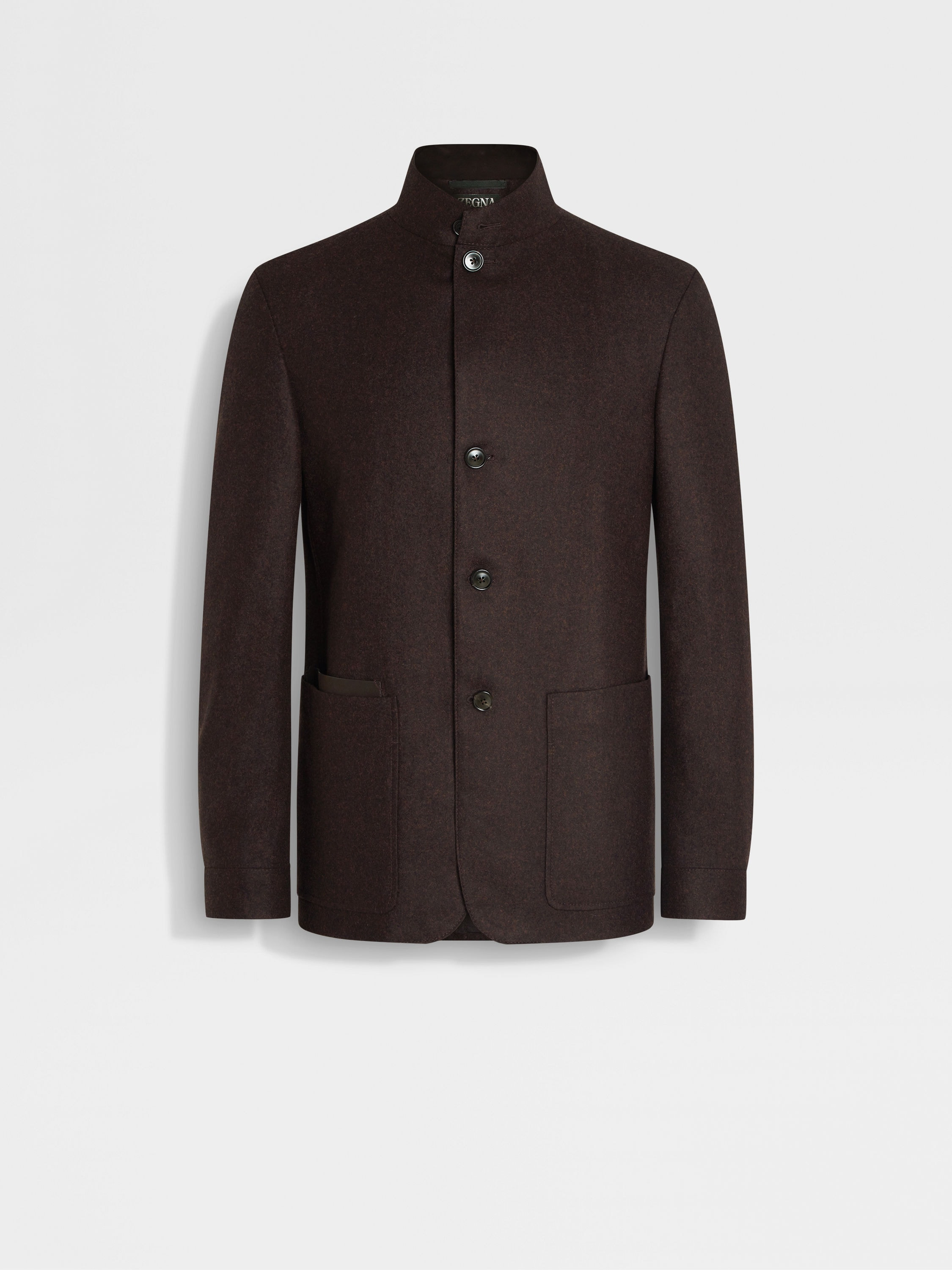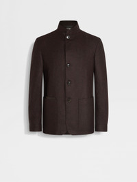 This dark brown Il Conte chore jacket is crafted from ZEGNA's exclusive Oasi Cashmere fibers. INFO This take on our iconic Il Conte chore jacket is presented in a timeless dark brown colorway, letting the beauty of multimelange Oasi Cashmere take center stage. A stand collar and leather details elevate its sleek silhouette, fitted with patch pockets to set the look apart. Il Conte jacket pays homage to our Founder, Ermenegildo Zegna. He was bestowed the noble title of Count of Monte Rubello in the 1930s by King Vittorio Emanuele III of Italy for the legacy he created as an entrepreneur, philanthropist, and businessman. PRODUCT CODE 269C82A2-1GCKQ0 MATERIALS AND CARE Main body: 100% Cashmere Leather details: Calfskin The inspiration behind this Oasi Cashmere collection garment was born in Oasi Zegna, a 100km² natural territory and the home of our values. It's crafted from Oasi Cashmere fibres, made with 100% certified traceable fibres. The Oasi Cashmere collection follows in the footsteps of our Founder, who envisioned a vertically integrated system of producing textiles. Do not wash. Do not bleach. Do not tumble dry. Iron at max 110°C. Professional dry cleaning in tetrachloroethene and hydrocarbons, mild process. FIT AND PRODUCT DETAILS • Regular fit • Tailoring chore jacket • Single vent • Stand collar • Button closure • Leather details • Patch pockets • Deconstructed, fused • Lined • 73 cm length on size 48