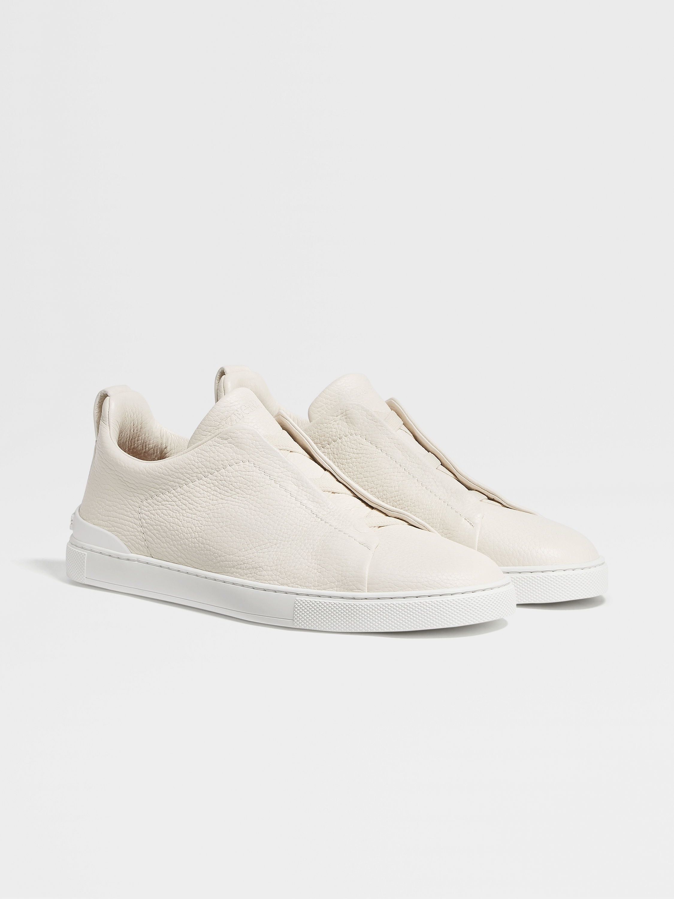 The off white deerskin Triple Stitch™ sneakers represent everyday luxury. INFO The off white deerskin Triple Stitch™ low top sneakers are a sophisticated take on casual footwear. The sneakers' signature triple-crossed elastics evoke the hand-stitching on our tailored jackets. The lightweight design is paired with a white rubber sole. Customize these sneakers with our Made to Measure Service. For more information, please contact our Customer Care or visit your nearest stores. PRODUCT CODE LHCVO-S4667Z-PAN MATERIALS AND CARE Deerskin Clean with a soft cloth. Avoid contact with abrasives, water and substances containing alcohol, such as perfumes, solvents, etc. In case of contact with water, it is important to let the footwear dry completely before cleaning. Clean the rubber soles with a product specifically designed for cleaning rubber. Store in the included dust bag in a cool, dry place. FIT AND PRODUCT DETAILS • Crossing elastics • Leather lining • Sanitized® insole • White rubber sole • Tonal Zegna 232 Road Brand Mark on the heel tab • Made in Italy • Comes with a shoe bag We want every pair of Triple Stitch™ sneakers to fit perfectly anytime, anywhere, anyplace. To find your perfect fit, we recommend going down a half-size compared to your usual shoe size. Please note that Zegna uses UK sizing. For further information, please contact us via our customer service channels or by visiting the nearest Zegna flagship store.