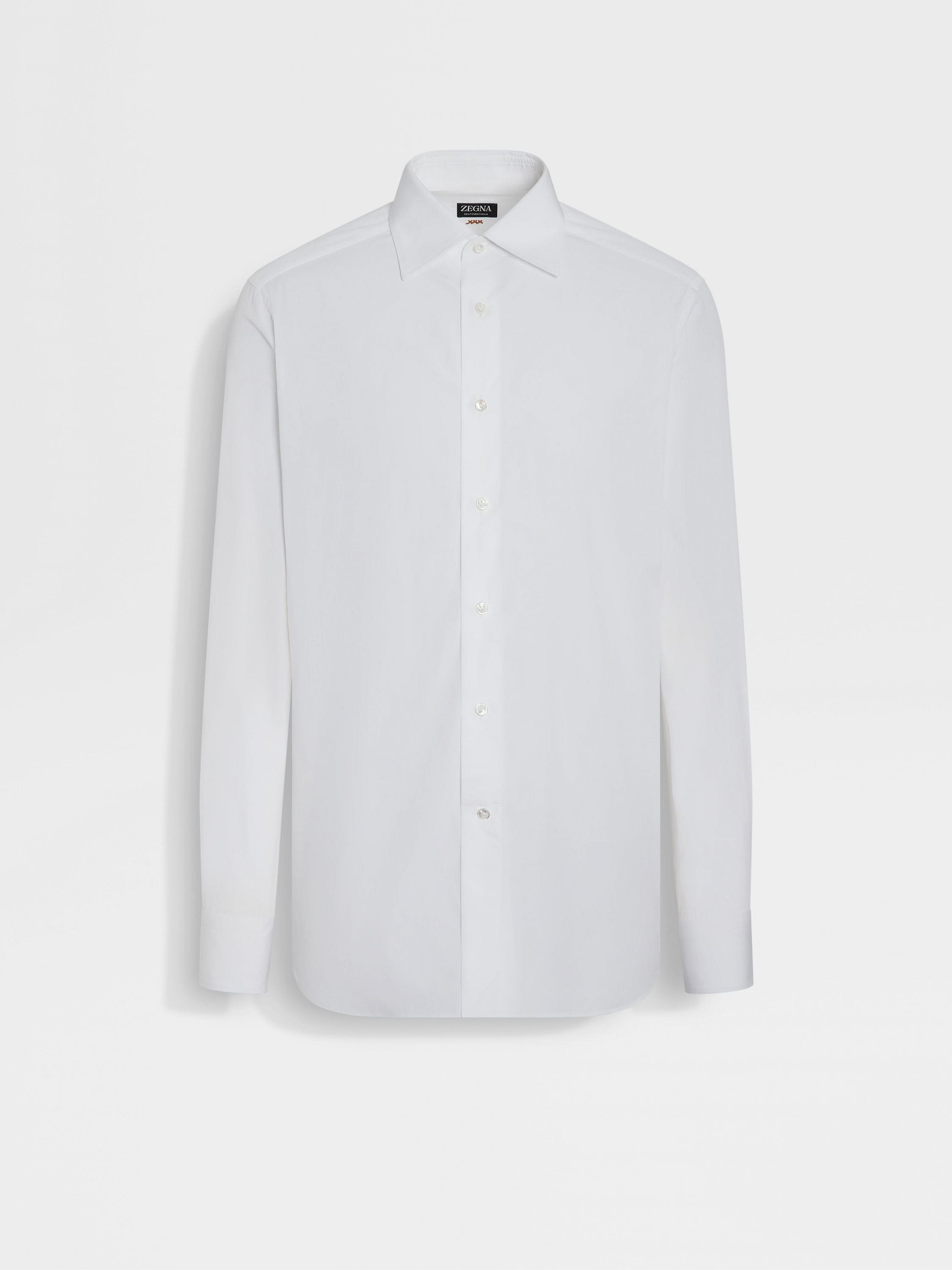 A crisp optical white colorway in soft Centoventimila cotton: this shirt is a formal essential. INFO This optical white shirt is crafted from exquisite Centoventimila cotton for an impeccably smooth feel against the skin. Its long-sleeved silhouette is styled with an elegant spread collar. PRODUCT CODE 202021A2-9NS0LB MATERIALS AND CARE 100% Cotton Centoventimila – Italian for 120,000 – is named after its high thread count. Garments crafted from this fabric are extremely lightweight and have a soft, silk-inspired hand feel. Max washing temp 40°C. Do not bleach. Do not tumble dry. Iron at max 150°C. Professional dry cleaning in tetrachloroethene and hydrocarbons. FIT AND PRODUCT DETAILS • Regular fit • Tailoring shirt • Spread collar • Standard cuffs • Button closure • 79 cm length on size 39