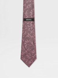 A jacquard leaf pattern lends refined charm to this pink silk tie. INFO Bring the luxurious allure of pure mulberry silk to formal ensembles with this pink tie. A jacquard leaf pattern adds charm and texture. PRODUCT CODE Z9C00TA9-1PC-PI1 MATERIALS AND CARE Main body: 100% Mulberry Silk Lining: 100% Mulberry Silk Do not wash. Do not bleach. Do not tumble dry. Do not iron. Professional dry cleaning in tetrachloroethene and hydrocarbons, mild process. FIT AND PRODUCT DETAILS • Blade width: 8 cm / 3.1 in • Foliage-colored jacquard pattern • Made in Italy