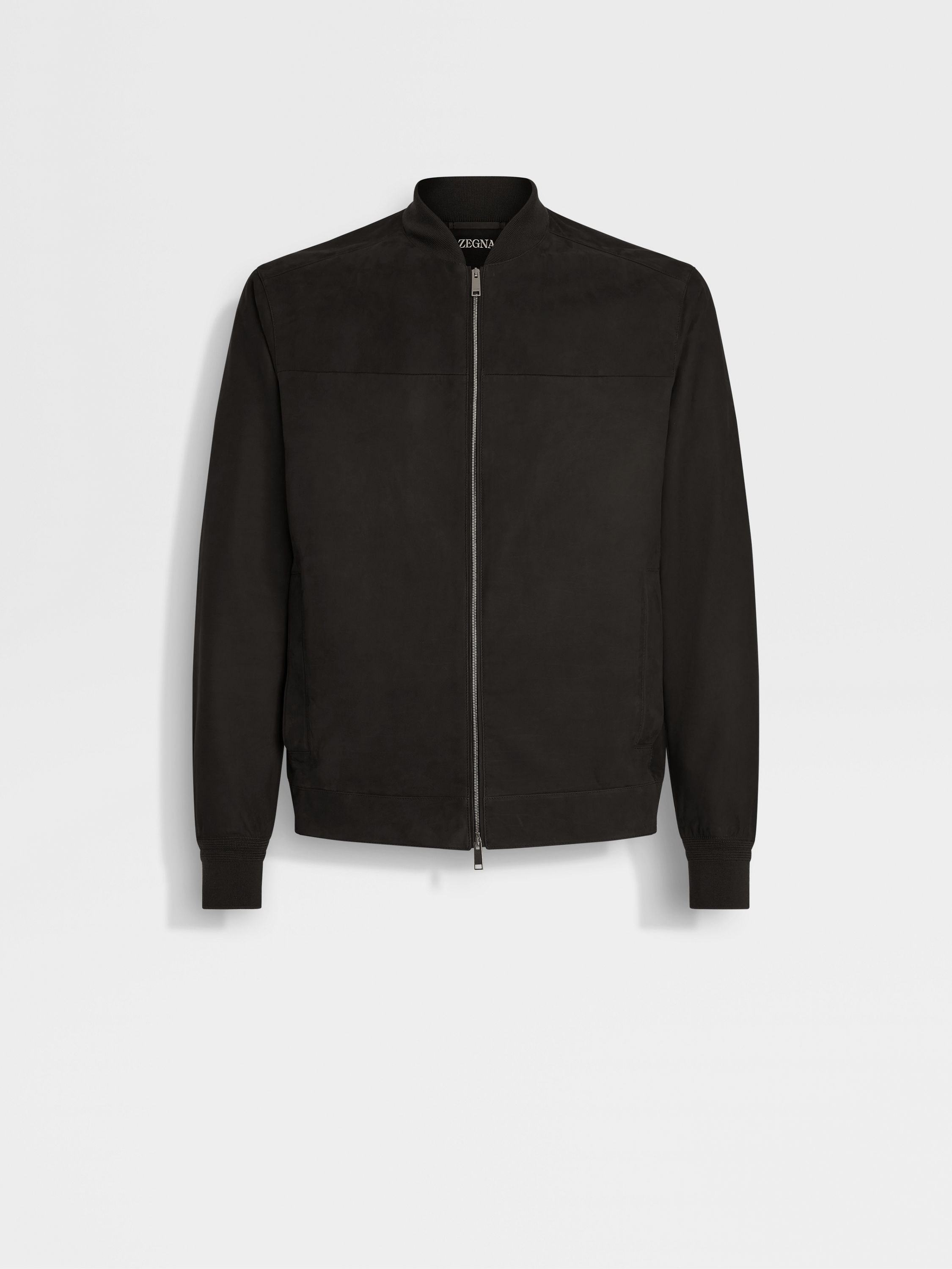 Zegna's supple SECONDSKIN leather elevates this black bomber to luxury status. INFO This black bomber showcases the exceptional beauty of Zegna's SECONDSKIN leather. Its timeless silhouette is styled with classic knitted trims, a zip closure and welt pockets, bringing effortless style to all occasions. PRODUCT CODE UFPNSA9-F189P-K09 MATERIALS AND CARE Calfskin SECONDSKIN is crafted by tanneries selected for their renowned expertise. Fine, supple and incredibly soft to the touch, it moulds to your proportions over time — offering impeccable comfort with each wear. Do not wash. Do not bleach. Do not tumble dry. Iron at max 110°C. Professional dry cleaning in hydrocarbons, mild process. Professional leather clean only. Use press cloth. Avoid prolonged contact with light coloured garments. FIT AND PRODUCT DETAILS • Regular fit • Knit bomber collar • Zip closure • Knit hem and cuffs • Stand welt pockets • 66 cm length on size 48