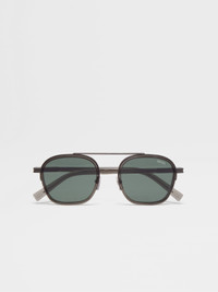 With their hybrid design, the transparent dark grey Orizzonte I acetate and metal sunglasses are an ultra-contemporary choice. INFO A raised bridge borrowed from classic aviators frames the transparent dark grey Orizzonte I acetate and metal sunglasses' rounded lenses. The sunglasses are equipped with adjustable nose pads for a secure fit, featuring the Zegna Logo. The matte frames are embellished with chiseled lines on the temple tips and the matte aniline Zegna 232 Road Brand Mark on the corners. ORIZZONTE (oridˈdzonte) — ITALIAN FOR 'HORIZON' The inspiration for the Orizzonte I Sunglasses was Born in Oasi Zegna — the home of our values in the Italian Alps. Shaped to a contemporary unbridged silhouette, they're accented with our iconic 232 Road Brand Mark and ZEGNA logo, then finessed with a slender brow bar that draws from the panoramic mountain-top views in our 100km² natural territory. PRODUCT CODE EZ0231-5120N MATERIALS AND CARE Acetate; Metal Clean your eyewear using a soft cloth, preferably microfiber, with water or a mild detergent. To avoid scratching the lenses, never use paper towels or clothing to clean your eyewear. Do not use household detergents or soaps to clean your eyewear; these products will damage the lenses over time. FIT AND PRODUCT DETAILS • Lens 51 mm – Bridge 22 mm – Temple 145 mm • Base 2 • Finishing: matte • Suitable for mounting prescription lenses • Single bridge • Acetate end tips and rims • Matte black gold aniline Zegna 232 Road Brand Mark on the temples as a corner detail • Laser-inscribed Zegna Logo on the temples • Adjustable nose pads with bold Zegna Logo • Chiseled lines on the temple tips