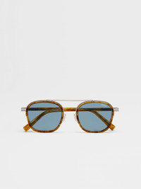 TRANSPARENT LIGHT BROWN HAVANA ORIZZONTE I ACETATE AND METAL SUNGLASSES