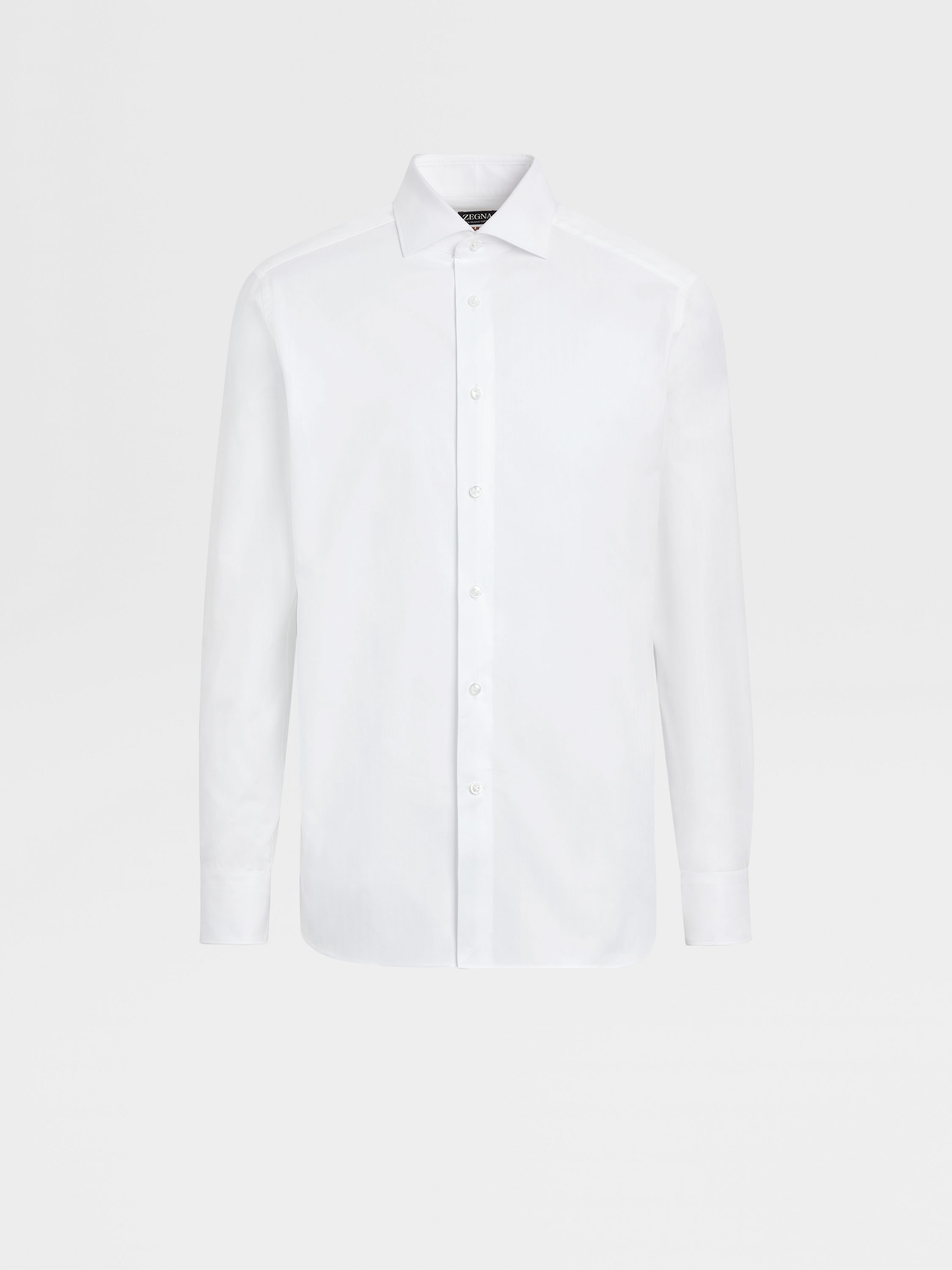 The white Sea Island cotton tailoring shirt complements formal ensembles. INFO Made from remarkably bright Sea Island cotton, the long-sleeve white tailoring shirt stays crisp and resilient, wear after wear. This wardrobe staple is an elegant way to enjoy the comfort of pure cotton. PRODUCT CODE C02300-9NS0LB MATERIALS AND CARE 100% Cotton Machine wash, warm (40°C / 105°F) or dry clean. Do not bleach. Do not tumble dry. Regular ironing, steam or dry, may be performed at medium setting (150°C / 300°F). FIT AND PRODUCT DETAILS • Regular fit • French collar • Standard cuffs • Round bottom • 79cm length on size 39 • Model is 187 cm tall (6.1 feet) and wears an Italian size 39.