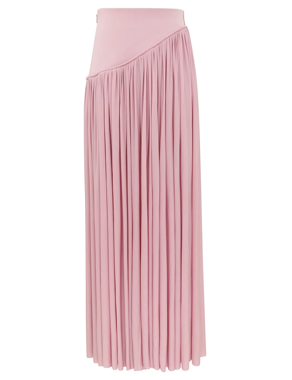 ITEM DETAILS The Alchemy Asymmetric Skirt in Light Pink from our Spring 2026 Collection, Kindred Spirit. A maxi skirt featuring an asymmetric hip panel and heavy gathering throughout. - Mid-rise, full-length skirt - Angled hip panel - Invisible right-side zip - Heavily gathered - Lined Style Code: 8477SS262 SIZE DETAILS 0P 0 1 2 3 4 Length 40 43.5 43.5 43.5 43.5 43.5 Waist 23.5 24.5 27 28.5 30.5 32.5 Fitted at the hips, relaxed through the legs Light-weight, stretchy fabric This garment fits true to size Available in size 0P, suited to clients who are under 5'3"/ 160cm Model is 5'9.5"/178 cm, bust size 32C/10C and wears a size 0 Item measurements are in inches CARE INSTRUCTIONS Main: 100% viscose; contrast: 96% viscose, 4% elastane Dry clean only code f (hydrocarbon only); Remove any detachable trims prior to dry cleaning; Cover to protect trim; Do not steam; Iron in low temperature with protective cloth; Do not spot clean Always check the label or care card for specific care instructions.