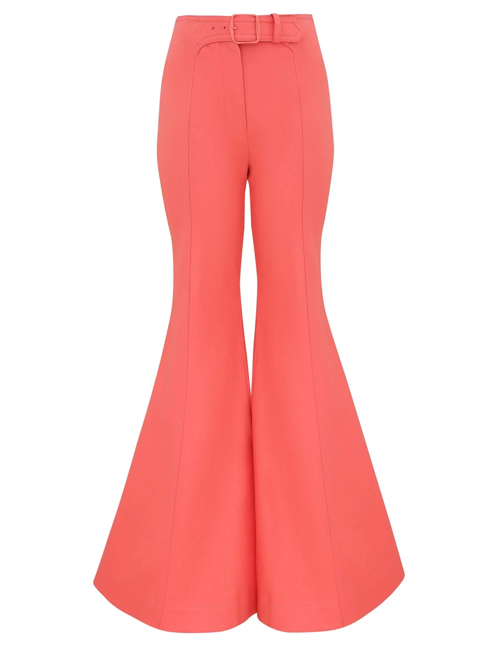 ITEM DETAILS The Alchemy Drill Super Flare Pant in Coral from our Spring 2026 Collection, Kindred Spirit. A cotton pant featuring a high-rise waistband with fixed belt and wide flare hem. - Cotton drill fabric - High-rise, full-length pant - Fixed waistband with sewn in belt - Centre front fly closure - Exaggerated, flared cuffs - Fully lined Style Code: 7430PS262 SIZE DETAILS 0P 0 1 2 3 4 Length 41 45.5 45.5 45.5 46 46.5 Waist 26 27.5 29 31.5 33 35.5 Hip 34 36 38.5 40 42.5 44 Inseam 14 14.5 15 15.5 15.5 16 Tailored fit High-rise waist with a full-length leg Heavy-weight, non-stretchy fabric This garment fits true to size Available in size 0P, suited to clients who are under 5'3"/ 160cm Model is 5'9.5"/178 cm, bust size 32C/10C and wears a size 0 Item measurements are in inches CARE INSTRUCTIONS Main: 100% cotton; pocketing: 100% cotton Dry clean only code f (hydrocarbon only); Remove any detachable trims prior to dry cleaning; Cover to protect trim; Iron in low temperature with protective cloth; Light steam only; Do not spot clean Always check the label or care card for specific care instructions.