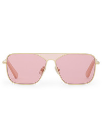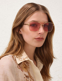 ITEM DETAILS The Amee Navigator in Pink from our Spring 2025 Collection, Illumination. A navigator shaped metal frame featuring custom acetate temple tips and solid coloured lenses. - Acetate temple tips - Partially exposed metal core - Pink lens are category 1 - Taupe lens are category 2 - Comes with ZIMMERMANN case, dust bag and storage box Style Code: 1024XS25A1 SIZE DETAILS LENS: Pink: Category 1 Taupe: Category 2 FRAME: Lens: 59mm Nose bridge: 13mm Temple length: 145mm CARE INSTRUCTIONS Frame: 100% metal, lens: 100% nylon Comes with a case and dust bag. Clean your sunglasses by gently rubbing them with a lens cleaning cloth and a liquid cleaner specifically designed for eyewear lenses. Whenever setting down your frames, place them lens side up to avoid scratching. When frames are not being worn, place them inside the protective case. Avoid leaving your sunglasses in the car, especially on hot days, to prevent warping. Wearing sunglasses on the top of your head can stretch the hinges over time - avoid if possible. Always check the label or care card for specific care instructions.