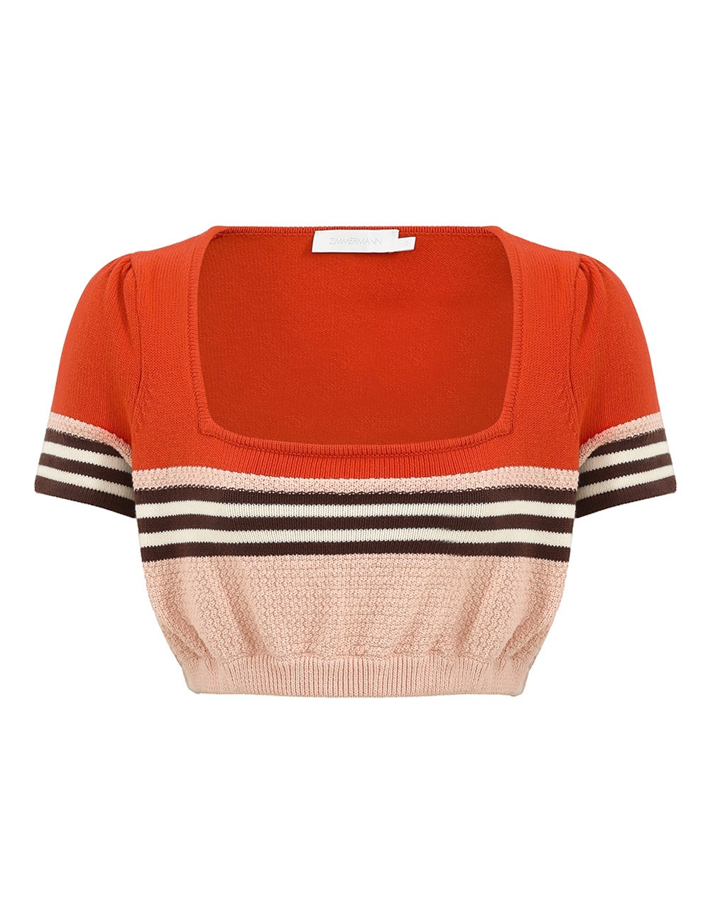 ITEM DETAILS The Ascension Stripe Knit Top in Stripe from our Summer Swim 2025 Collection. A cropped knit top featuring a square neckline, short sleeves and a gathered waist. - Knit top - Short sleeves - Elasticated waistband Campaign: This style was featured in the Summer Swim 2025 Campaign. Style Code: 3302TSS253 SIZE DETAILS 0P 0 1 2 3 Length 13.5 14.5 15 15.5 15.5 Bust 33 34.5 37 39.5 41 Sleeve 8 8 8.5 8.5 8.5 Designed with an elasticated waistband for a relaxed fit This garment fits true to size Available in size 0P, suited to clients who are under 5'3"/ 160cm Model is 5'9.5"/178 cm, bust size 32C/10C and wears a size 0 Item measurements are in inches CARE INSTRUCTIONS 95% cotton 4% polyamide 1% elastane Gentle cold hand wash separately with mild detergent Remove any detachable trims prior to cleaning Cover to protect trim; Do not soak, rub or wring Do not bleach Do not tumble dry Dry flat in shade Cool iron with protective cloth Do not spot clean; Store garment flat do not hang Dry cleanable code f (hydrocarbon only) Always check the label or care card for specific care instructions.