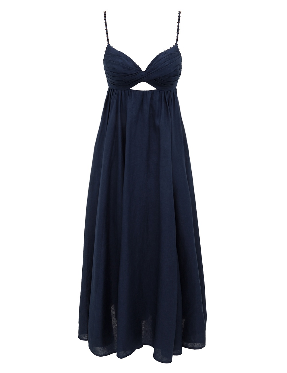 ITEM DETAILS The Ascension Twist Front Dress in Dark Blue from our Summer Swim 2025 Collection. A linen midi dress featuring a sweetheart neckline, twist front feature detail and wooden bead detailing on the straps, finished with a pleated drop style skirt. - 100% linen fabric - Adjustable straps with wooden beaded trim - Shirred elastic across back - Hook and bar closure - Scooped lower back - Boning in the bodice - Invisible zip closure at lower back Style Code: 4234DSS253 SIZE DETAILS 0P 0 1 2 3 Length 36 40 40 40 40 Waist 12.5 13.5 14 15 16.5 Designed to be slightly fitted at the bust and waist, loose at the hip This garment fits true to size Available in size 0P, suited to clients who are under 5'3"/ 160cm Model is 5'9.5"/178 cm, bust size 32C/10C and wears a size 0 Item measurements are in inches CARE INSTRUCTIONS Main: 100% linen; lining: 100% cotton Dry clean only code f (hydrocarbon only); Remove any detachable trims prior to dry cleaning; Cover to protect trim; Cool iron with protective cloth; Light steam only; Do not spot clean Always check the label or care card for specific care instructions.