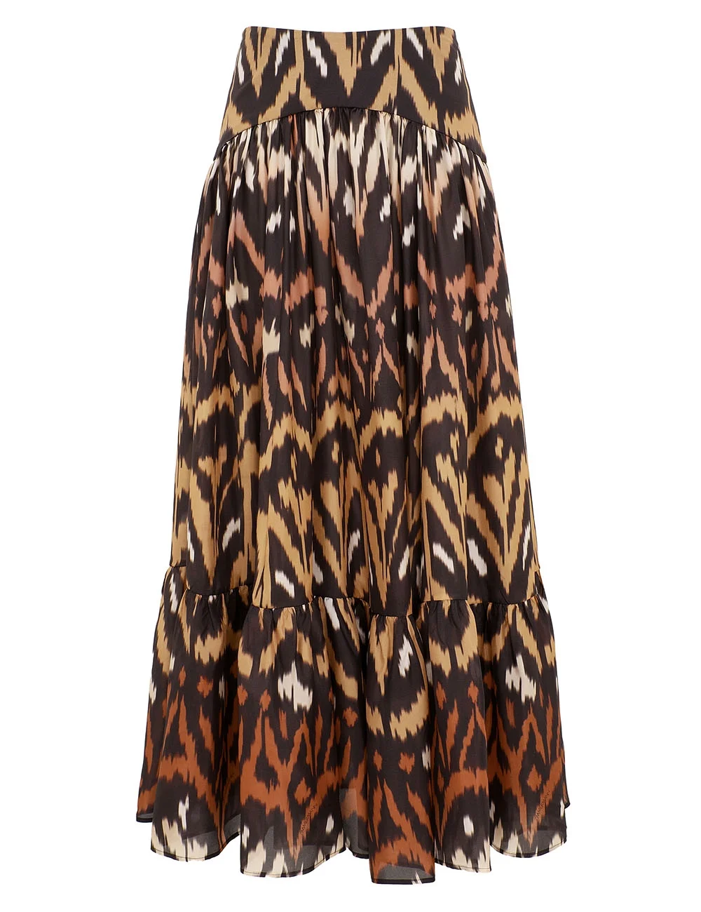 ITEM DETAILS The Aster Midi Skirt in Charcoal Ikat from our Summer Swim 2026 Collection. A silk skirt featuring a high-rise waistband and heavy gathering throughout. - Silk habutae fabric - High-rise, mid-length skirt - Centre back invisible zip - Lined Style Code: 8467SSS261 SIZE DETAILS 0P 0 1 2 3 4 Length 90 96 96 96 96 96 Waist 64 68 72 78 82 88 Fitted at the waist, relaxed through the skirt This garment fits true to size Available in size 0P, suited to clients who are under 5'3"/ 160cm Model is 5'9.5"/178 cm, bust size 32C/10C and wears a size 0 Item measurements have been rounded to the nearest cm CARE INSTRUCTIONS Main: 100% silk Dry clean only code f (hydrocarbon only); Remove any detachable trims prior to dry cleaning; Cover to protect trim; Iron in low temperature with protective cloth; Light steam only; Do not spot clean Always check the label or care card for specific care instructions.