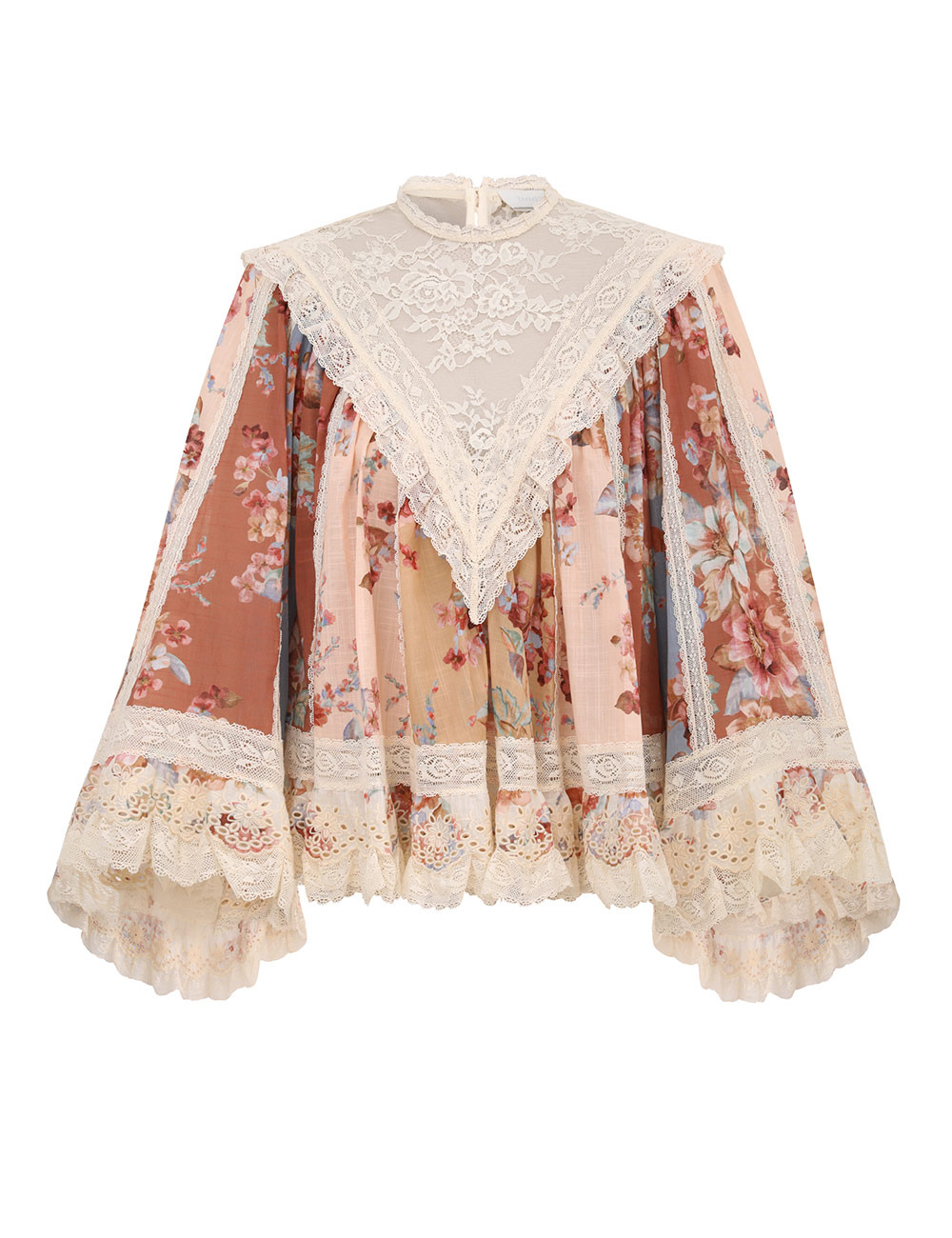 ITEM DETAILS The Awaken Lace Trim Blouse in Spliced Print from our Resort Swim 2026 Collection. A long sleeve cotton blouse featuring heavy gathering and a spliced all-over floral print, finished with lace trim detailing throughout. - Cotton blouse - Relaxed sleeves with wide cuffs - V-neckline with sheer lace overlay across bust and back - Rouleau loop buttons at back neck - Frill trim at hem and sleeves Style Code: 5764TRS261 SIZE DETAILS 0P 0 1 2 3 4 Length 22.5 24 24 24.5 25 25 Sleeve 21.5 23 23.5 23.5 23.5 23.5 Designed for a relaxed fit This garment fits true to size Available in size 0P, suited to clients who are under 5'3"/ 160cm Model is 5'9.5"/178 cm, bust size 32C/10C and wears a size 0 Item measurements are in inches CARE INSTRUCTIONS Main: 100% cotton; contrast: 100% polyamide; embroidery: 100% polyester; trim: 100% cotton Dry clean only code f (hydrocarbon only); Remove any detachable trims prior to dry cleaning; Cover to protect trim; Do not steam; Iron in low temperature with protective cloth; Do not spot clean Always check the label or care card for specific care instructions.