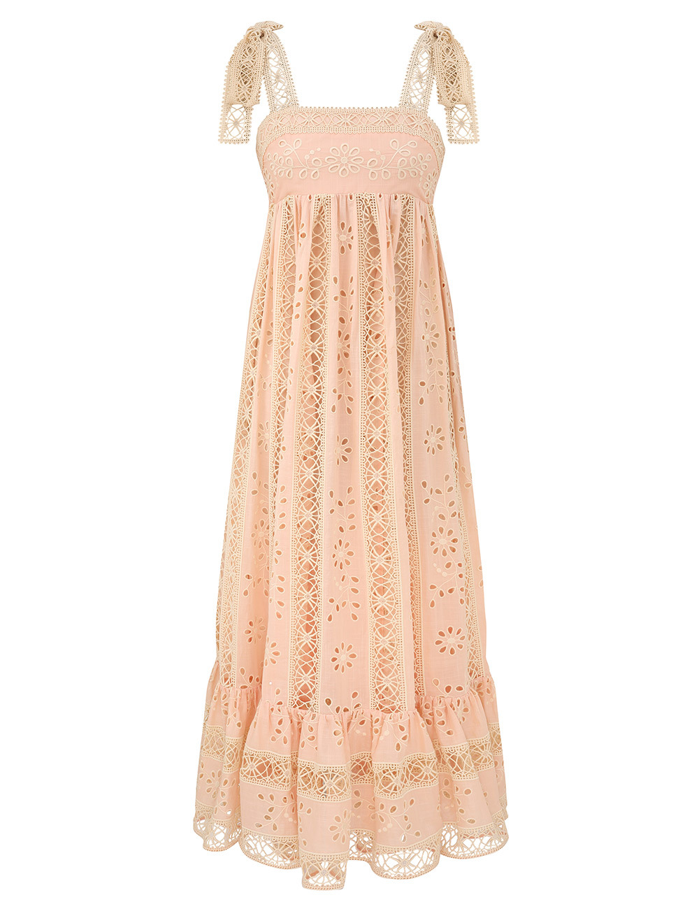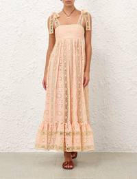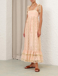 ITEM DETAILS The Awaken Textured Stripe Maxi in Light Peach from our Resort Swim 2026 Collection. A cotton maxi dress featuring a square neckline, self-tie straps, finished with an invisible centre back zip closure and spliced embroidery throughout. - Cotton maxi dress - Boning encased bodice - Wide bow tie straps - Heavily gathered - Shirred back bodice with invisible zip closure - Frilled hem - Fully lined Style Code: 5955DRS261 SIZE DETAILS 0P 0 1 2 3 4 Length 40.5 44 44 44 44 44 Bust 15.5 16.5 17.5 18 19.5 20.5 Waist 12.5 14 15 15.5 17.5 18 Designed to fitted at the bust, relaxed throughout Heavy-weight, non-stretchy fabric This garment fits true to size Available in size 0P, suited to clients who are under 5'3"/ 160cm Model is 5'9.5"/178 cm, bust size 32C/10C and wears a size 0 Item measurements are in inches CARE INSTRUCTIONS Main: 100% cotton; embroidery: 100% polyester; lining: 100% cotton; trim: 100% polyester Dry clean only code f (hydrocarbon only); Remove any detachable trims prior to dry cleaning; Cover to protect trim; Iron in low temperature with protective cloth; Light steam only; Do not spot clean Always check the label or care card for specific care instructions.