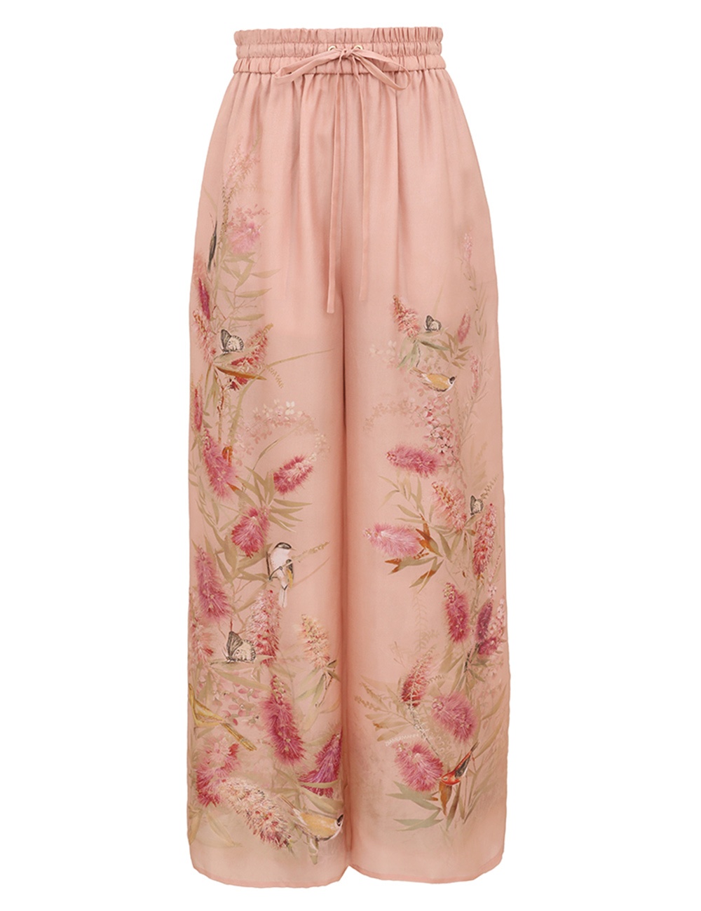 ITEM DETAILS The Cascadian Relaxed Pant in Pink Botanical Floral from our Summer Swim 2025 Collection. A silk mid rise pant featuring a relaxed silhouette and drawstring waist. - 100% silk habutae fabric - Elasticated, drawstring waistband - Double turned hemline - Functional side pockets - Short lining underneath Style Code: 3254PSS255 SIZE DETAILS 0P 0 1 2 3 4 Length 36.5 41 41.5 41.5 41.5 42 Waist 25 26 28.5 30.5 32.5 34.5 Hip 40 41.5 44 45.5 48 49.5 Inseam 26 29.5 29.5 29.5 29.5 29.5 Designed with an elasticated waistband for a flexible fit This garment fits true to size Available in size 0P, suited to clients who are under 5'3"/ 160cm Model is 5'9.5"/178 cm, bust size 32C/10C and wears a size 0 Item measurements are in inches CARE INSTRUCTIONS Main: 100% silk; lining: 100% silk Dry clean only code f (hydrocarbon only); Remove any detachable trims prior to dry cleaning; Cover to protect trim; Cool iron with protective cloth; Light steam only; Do not spot clean Always check the label or care card for specific care instructions.