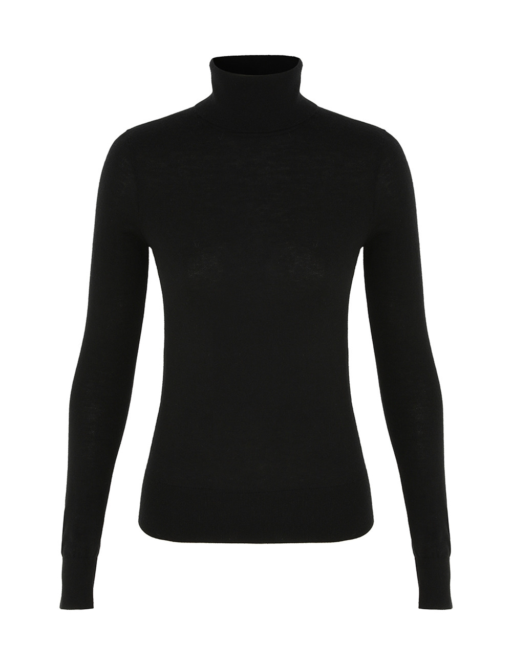 ITEM DETAILS The Cashmere Turtleneck Sweater in Black from our Fall 2025 Collection, Hypnotic. A cashmere sweater featuring a ribbed roll neck, cuffs and hem. - 100% cashmere - Slim fit silhouette - Ribbed neck, hem and cuffs Style Code: 8108TF25R SIZE DETAILS 0P 0 1 2 3 4 Length 54 57 58 59 59 60 Bust 76 82 88 92 98 102 Sleeve 57 61 62 63 63 64 Designed for a close fit This garment fits true to size Available in size 0P, suited to clients who are under 5'3"/ 160cm Model is 5'9.5"/178 cm, bust size 32C/10C and wears a size 0 Item measurements have been rounded to the nearest cm CARE INSTRUCTIONS 100% cashmere Dry clean only code f (hydrocarbon only); Remove any detachable trims prior to dry cleaning; Cover to protect trim; Cool iron with protective cloth; Do not spot clean; Store garment flat do not hang Always check the label or care card for specific care instructions.