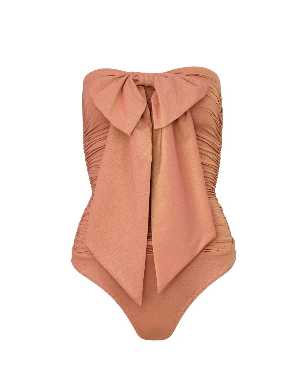 ITEM DETAILS The Coco Metallic Drape Bow 1PC in Shell Pink from our Summer Swim 2025 Collection. A lycra one piece featuring a draped bodice and dramatic bow detail at bust. - Lycra one piece with metallic finish - Gripper elastic at neckline - Side seam boning - Ruching throughout - Medium bottom coverage - Removable and adjustable straps for versatile fit - Lined Style Code: 4519WSS254 SIZE DETAILS This garment fits true to size Model is 5'10.5"/179 cm, bust size 34C/12C and wears a size 0