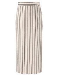 ITEM DETAILS The Daylight Midi Skirt in Cream/Black from our Resort Swim 2026 Collection. A knit midi skirt featuring a straight silhouette and contrasting stripes throughout. - Mid-rise, elasticated waist - Midi-length knit skirt - Slip on style Style Code: 6856SRS263 SIZE DETAILS 0P 0 1 2 3 4 Length 27.5 30.5 30.5 30.5 30.5 30.5 Inseam 21.5 23.5 23.5 23.5 23.5 23.5 Sleeve 12.5 13.5 15 15.5 16.5 18 Designed with an elasticated waistband for a flexible fit This garment fits true to size Available in size 0P, suited to clients who are under 5'3"/ 160cm Model is 5'9.5"/178 cm, bust size 32C/10C and wears a size 0 Item measurements are in inches CARE INSTRUCTIONS 87% viscose, 12% polyamide, 1% elastane Dry clean only code f (hydrocarbon only) Remove any detachable trims prior to dry cleaning Cover to protect trim Iron in low temperature with protective cloth Do not spot clean Store garment flat do not hang Always check the label or care card for specific care instructions.