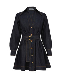 ITEM DETAILS The Denim Mini Shirt Dress in Night Sky from our Cruise 2026 Collection, Twisted Romance. A denim mini dress featuring an elongated classic collar, long sleeves, buttons down the centre front, finished with a removable D-ring belt. - Denim mini dress - Gold buttons at front and cuffs - Removable D-ring waist belt - Heavily gathered Style Code: 6990DC26R SIZE DETAILS 0P 0 1 2 3 4 Length 31 33 33.5 34.5 34.5 35.5 Bust 26 29 31.5 34 35.5 38 Waist 25 29 30.5 33 34.5 37 Sleeve 19 20.5 21 21.5 21.5 21.5 Slightly fitted at the bust and waist, loose at the hip Heavy-weight, non-stretchy fabric This garment fits true to size Available in size 0P, suited to clients who are under 5'3"/ 160cm Model is 5'9.5"/178 cm, bust size 32C/10C and wears a size 0 Item measurements are in inches CARE INSTRUCTIONS 100% cotton Gentle cold machine wash separately with mild detergent; Remove any detachable trims prior to cleaning Cover to protect trim; Do not soak or bleach; Do not tumble dry; Dry in shade without delay; Iron in low temperature with protective cloth; Do not spot clean; Dry cleanable code p Always check the label or care card for specific care instructions.