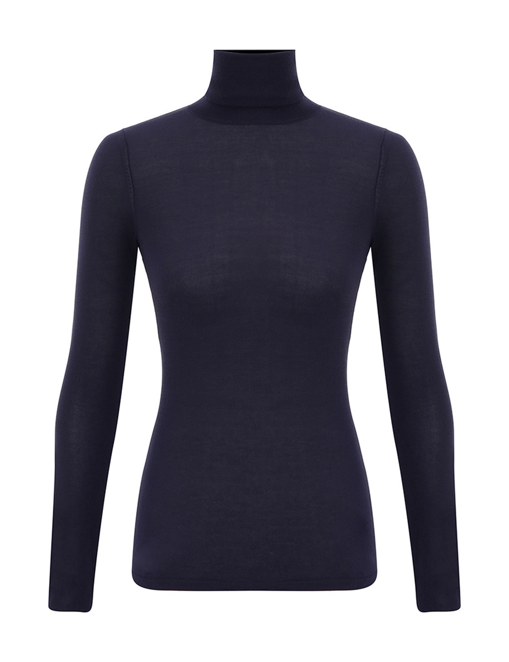 ITEM DETAILS The Fine Knit Roll Neck Top in Ink from our Fall 2025 Collection, Hypnotic. A long sleeve knit top featuring a ribbed roll neck and thumb hole at cuff. - Slim fit top - Roll neck high collar - Thumb hole detailing at cuff - Slip on style Style Code: 4893TF25R SIZE DETAILS 0P 0 1 2 3 4 Length 58 61 62 63 63 64 Bust 72 76 82 88 94 98 Sleeve 65 69 70 71 71 72 Designed for a close fit This garment fits true to size Available in size 0P, suited to clients who are under 5'3"/ 160cm Model is 5'9.5"/178 cm, bust size 32C/10C and wears a size 0 Item measurements have been rounded to the nearest cm CARE INSTRUCTIONS 73% lyocell 27% acetate Dry clean only code f (hydrocarbon only); Remove any detachable trims prior to dry cleaning; Cover to protect trim; Cool iron with protective cloth; Do not spot clean; Store garment flat do not hang Always check the label or care card for specific care instructions.