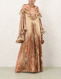 ITEM DETAILS The Hypnotic Burnout Dress in Cream Paisley from our Fall 2025 Collection, Hypnotic. A maxi dress featuring a burnout paisley print, a stand collar and frill detailing across the bodice and sleeves. - Stand collar with fine piping - Long angel sleeves - Heavily gathered for volume and movement - Invisible zip closure at centre back neck - Frill trim at yoke and sleeves - Comes with separate slip Style Code: 5026DF251 SIZE DETAILS 0P 0 1 2 3 4 Length 145 158 158 159 159 159 Sleeve 48 52 52 53 53 55 Designed for a relaxed fit This garment fits true to size Available in size 0P, suited to clients who are under 5'3"/ 160cm Model is 5'9.5"/178 cm, bust size 32C/10C and wears a size 0 Item measurements have been rounded to the nearest cm CARE INSTRUCTIONS Main: 76% viscose, 24% silk; slip: 86% recycled polyester, 14% elastane Dry clean only code f (hydrocarbon only); Cover to protect trim; Cool iron with protective cloth; Do not spot clean ; Gentle cold hand wash separately with mild detergent Remove any detachable trims prior to cleaning Cover to protect trim; Do not soak, rub or wring Do not bleach Do not tumble dry Dry flat in shade Cool iron with protective cloth Do not spot clean Dry cleanable code p Always check the label or care card for specific care instructions.