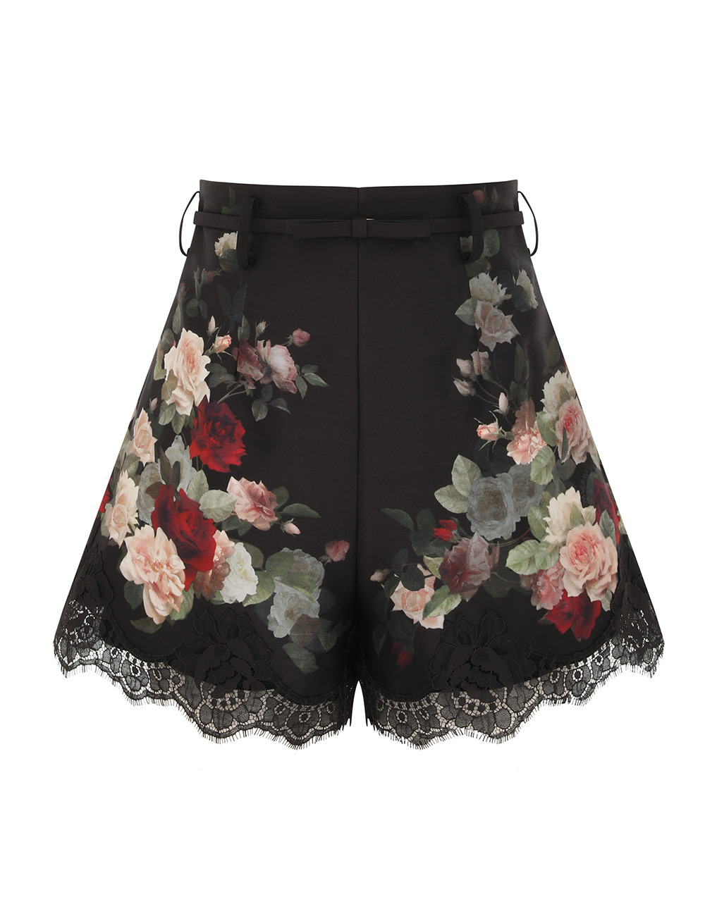 ITEM DETAILS The Hypnotic Lace Trim Short in Black Cascade from our Fall 2025 Collection, Hypnotic. A high waisted silk blend short featuring a self-tie belt, invisible centre back zip closure and lace trim throughout. - Silk cotton blend short - Belt loops with removable waist tie belt - Side seam pockets - Placement printed - Embroidered trim - Fully lined Style Code: 5212AF251 SIZE DETAILS 0P 0 1 2 3 4 Length 34 36 37 38 39 40 Waist 64 68 74 78 84 88 Hip 92 98 102 108 112 118 Inseam 6 6 6 6 6 7 Designed to be fitted at the waist and hips, relaxed through the legs Light-weight, non-stretchy fabric This garment fits true to size Available in size 0P, suited to clients who are under 5'3"/ 160cm Model is 5'9.5"/178 cm, bust size 32C/10C and wears a size 0 Item measurements have been rounded to the nearest cm CARE INSTRUCTIONS Main: 53% silk, 47% cotton; contrast: 100% polyester; lining: 100% viscose Dry clean only code f (hydrocarbon only); Remove any detachable trims prior to dry cleaning; Cover to protect trim; Cool iron with protective cloth; Light steam only; Do not spot clean Always check the label or care card for specific care instructions.