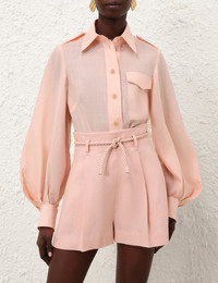 ITEM DETAILS The Hypnotic Linen Short in Pink from our Fall 2025 Collection, Hypnotic. A linen high waisted short featuring side seam pockets and a removable rope belt. - Linen high waisted short - Side seam pockets - Adjustable and removable belt - Tucks throughout - Welt pockets on back - Invisible zip at centre back Style Code: 2103AF251 SIZE DETAILS 0P 0 1 2 3 4 Length 38 40 41 42 42 43 Inseam 7 7 7 7 7 7 Waist 66 70 74 80 84 90 Fitted through the waist, relaxed through the legs This garment fits true to size Available in size 0P, suited to clients who are under 5'3"/ 160cm Model is 5'9.5"/178 cm, bust size 32C/10C and wears a size 0 Item measurements have been rounded to the nearest cm CARE INSTRUCTIONS Main: 100% linen; lining: 75% viscose, 25% silk Dry clean only code f (hydrocarbon only); Remove any detachable trims prior to dry cleaning; Cover to protect trim; Cool iron with protective cloth; Light steam only; Do not spot clean Always check the label or care card for specific care instructions.