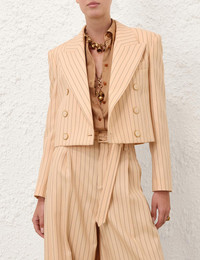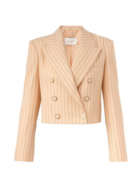 ITEM DETAILS The Hypnotic Pinstripe Blazer in Cream Pinstripe from our Fall 2025 Collection, Hypnotic. A tailored wool blend blazer featuring a double breasted closure, classic collar, and straight hem. - Buttons at centre front opening - Lightly padded shoulders - Long sleeves with buttoned cuffs - Breast welt pocket - Fully lined Style Code: 4826JF251 SIZE DETAILS 0P 0 1 2 3 4 Length 17.5 18.5 19 19 19.5 19.5 Bust 33 35.5 38 39.5 41.5 43.5 Sleeve 23 24.5 25 25 25 25.5 Designed for a tailored, cropped fit This garment fits true to size Available in size 0P, suited to clients who are under 5'3"/ 160cm Model is 5'9.5"/178 cm, bust size 32C/10C and wears a size 0 Item measurements are in inches CARE INSTRUCTIONS Main: 98% wool, 2% polyester; lining: 75% viscose, 25% silk Dry clean only code f (hydrocarbon only); Remove any detachable trims prior to dry cleaning; Cover to protect trim; Do not steam; Cool iron with protective cloth; Do not spot clean Always check the label or care card for specific care instructions.