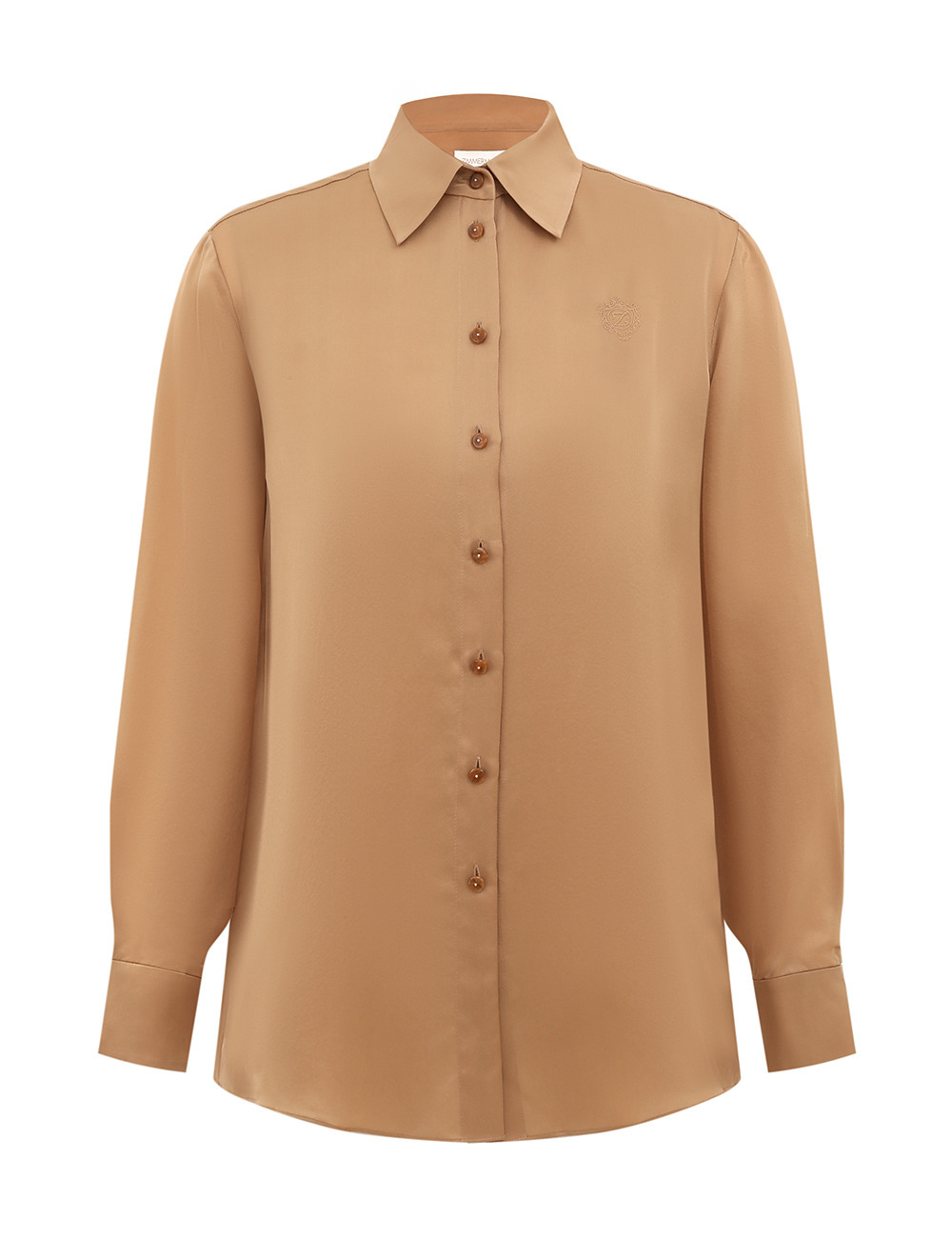 ITEM DETAILS The Hypnotic Satin Shirt in Biscuit from our Fall 2025 Collection, Hypnotic. A silk shirt featuring long sleeves, embroidery detailing and a classic collar. - 100% silk fabric - Relaxed silhouette style shirt - Buttons down the centre front and on the cuffs - Embroidery detail on the breast - Gathers on sleeves into cuffs - Pleat detail at back yoke Runway: This style was featured on the F25 Runway. Style Code: 5747TF251 SIZE DETAILS 0P 0 1 2 3 4 Length 25.5 27.5 27.5 28 28.5 28.5 Bust 41 42.5 45 46.5 49 50.5 Sleeve 20 21.5 21.5 22 22 22.5 Designed for a relaxed fit This garment fits true to size Available in size 0P, suited to clients who are under 5'3"/ 160cm Model is 5'9.5"/178 cm, bust size 32C/10C and wears a size 0 Item measurements are in inches CARE INSTRUCTIONS Main: 100% silk Dry clean only code f (hydrocarbon only); Remove any detachable trims prior to dry cleaning; Cover to protect trim; Cool iron with protective cloth; Light steam only; Do not spot clean Always check the label or care card for specific care instructions.