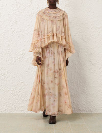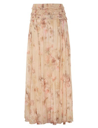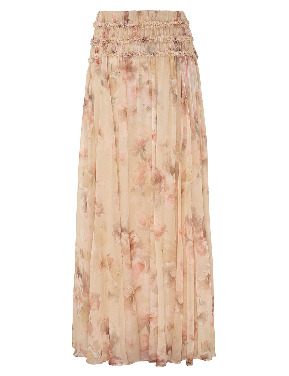 ITEM DETAILS The Hypnotic Shirred Maxi Skirt in Cream Peony from our Fall 2025 Collection, Hypnotic. A silk maxi skirt featuring a shirred waistband and pleated frills throughout. - 100% silk fabric - Heavily gathered maxi skirt - Invisible zip at centre back - Tiered frills at the waist Style Code: 6081SF251 SIZE DETAILS 0P 0 1 2 3 4 Length 89 98 98 98 98 98 Waist 66 68 74 80 86 90 Hip 88 92 98 104 108 112 Designed to be fitted at the waist, relaxed through the legs This garment fits true to size Available in size 0P, suited to clients who are under 5'3"/ 160cm Model is 5'9.5"/178 cm, bust size 32C/10C and wears a size 0 Item measurements have been rounded to the nearest cm CARE INSTRUCTIONS Main: 100% silk; lining: 100% viscose Dry clean only code f (hydrocarbon only); Remove any detachable trims prior to dry cleaning; Cover to protect trim; Cool iron with protective cloth; Light steam only; Do not spot clean Always check the label or care card for specific care instructions.