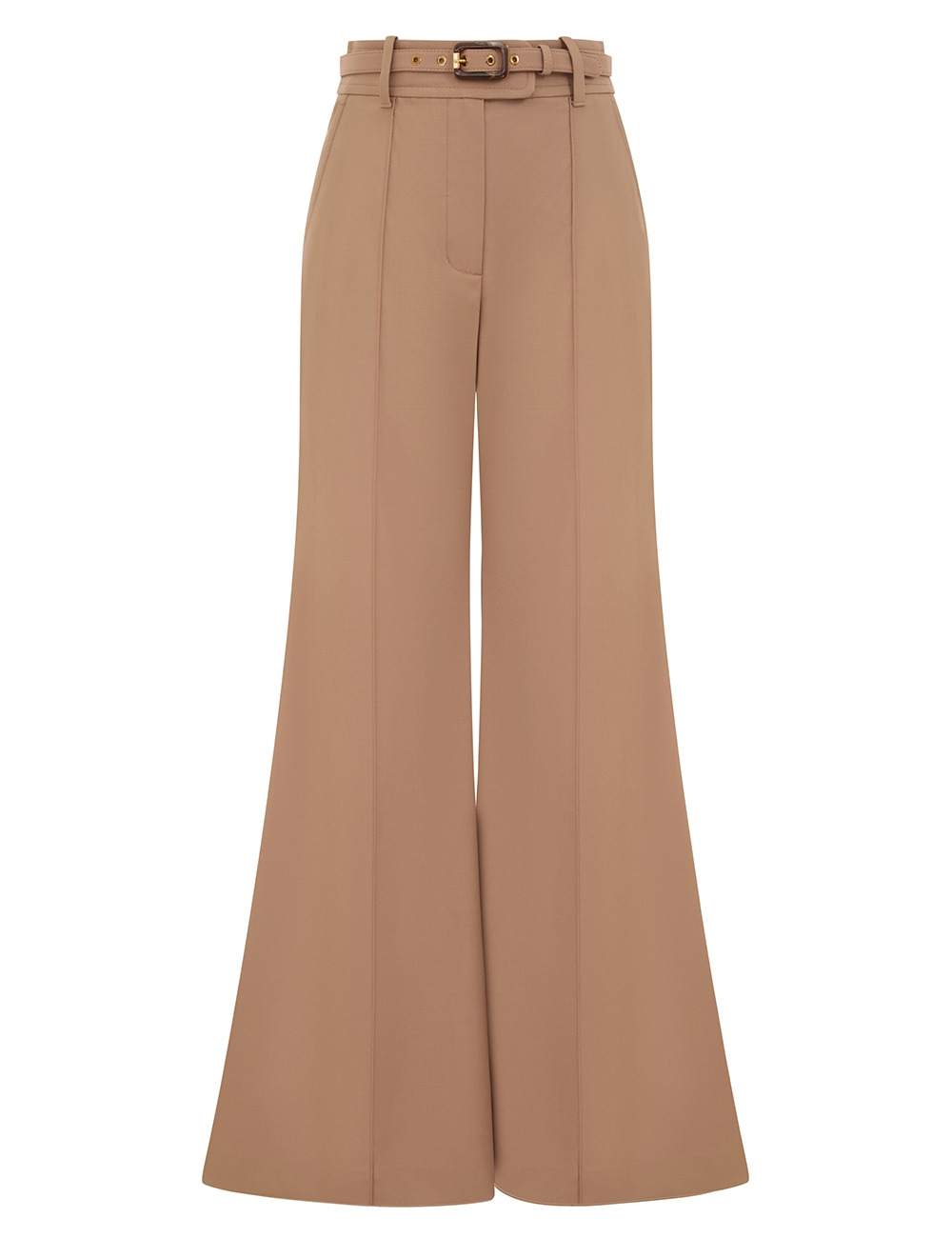 ITEM DETAILS The Hypnotic Stretch Wool Flare in Biscuit from our Fall 2025 Collection, Hypnotic. A wool pant featuring a wide flare silhouette, centre front pintucks and side seam pockets. - Stretch wool mid-rise pant - Centre front hook and bar closure - Metal fly zip - Removable self covered belt - Two front side pockets - Non-functional back pockets - Topstitch detailing throughout Style Code: 2987PF251 SIZE DETAILS 0P 0 1 2 3 4 Length 101 112 112 113 114 114 Waist 66 70 74 80 84 90 Hip 88 94 98 104 108 114 Inseam 79 88 88 88 88 88 Designed to be fitted at waist and hips, relaxed through the legs Mid-rise waist with a full-length leg This garment fits true to size Available in size 0P, suited to clients who are under 5'3"/ 160cm Model is 5'9.5"/178 cm, bust size 32C/10C and wears a size 0 Item measurements have been rounded to the nearest cm CARE INSTRUCTIONS Main: 98% wool, 2% elastane; contrast: 55% polyester, 45% cotton; pocketing: 75% viscose, 25% silk Dry clean only code f (hydrocarbon only); Cover to protect trim; Cool iron with protective cloth; Do not spot clean ; Always check the label or care card for specific care instructions.