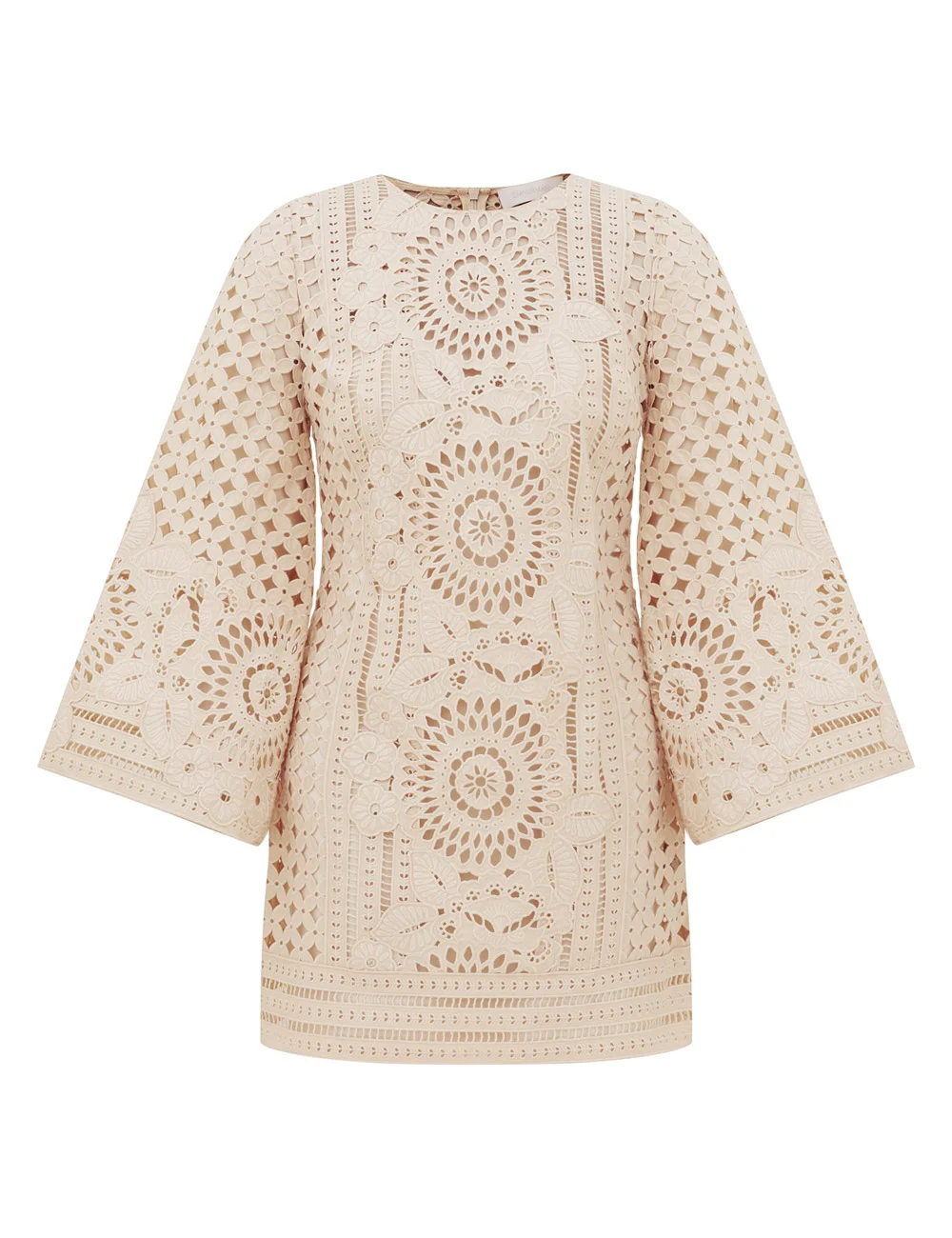ITEM DETAILS The Indra Embroidered Mini Dress in Tea from our Summer Swim 2026 Collection. A cotton mini dress featuring a round neckline, long sleeves and heavy embroidery throughout. - Cotton poplin fabric - High rounded neckline - Long sleeves with wide cuffs - Centre back invisible zip - Comes with a separate slip Style Code: 8619DSS262 SIZE DETAILS 0P 0 1 2 3 4 Length 79 85 85 87 89 90 Bust 82 86 92 96 102 106 Waist 76 78 84 88 94 98 Sleeve 52 55 56 58 58 58 Hip 94 98 104 108 114 118 Relaxed fit This garment fits true to size Available in size 0P, suited to clients who are under 5'3"/ 160cm Model is 5'9.5"/178 cm, bust size 32C/10C and wears a size 0 Item measurements have been rounded to the nearest cm CARE INSTRUCTIONS Main: 100% cotton; embroidery: 100% polyester; slip: 86% recycled polyester, 14% elastane Main: Dry clean only code f (hydrocarbon only) Remove any detachable trims prior to dry cleaning Cover to protect trim Iron in low temperature with protective cloth Light steam only Do not spot clean Slip: Gentle cold hand wash separately with mild detergent Do not bleach Dry in shade Iron in low temperature with protective cloth Do not tumble dry Dry cleanable code f (hydrocarbon only) Always check the label or care card for specific care instructions.