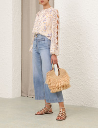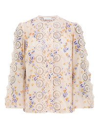 ITEM DETAILS The Lucky Embroidered Blouse in Cream/Blue Floral from our Summer Swim 2025 Collection. A cotton blouse featuring a rounded neckline and crochet buttons down the centre front, finished with embroidery trim detailing throughout. - 100% cotton fabric - Blouson sleeves with elasticated cuffs - Scalloped sleeves with cut-outs - Embroidery detail throughout - Comes with separate cami Style Code: 4287TSS252 SIZE DETAILS 0P 0 1 2 3 Length 23 24.5 25 25 25 Bust 34.5 37 38.5 41 42.5 Waist 34.5 36 38.5 40 42.5 Sleeve 24.5 26 26.5 26.5 27 Designed for a slightly loose fit This garment fits true to size Available in size 0P, suited to clients who are under 5'3"/ 160cm Model is 5'9.5"/178 cm, bust size 32C/10C and wears a size 0 Item measurements are in inches CARE INSTRUCTIONS Main: 100% cotton; embroidery: 100% polyester; slip: 100% cotton Dry clean only code f (hydrocarbon only); Remove any detachable trims prior to dry cleaning; Cover to protect trim; Cool iron with protective cloth; Light steam only; Do not spot clean Gentle cold hand wash separately with mild detergent; Remove any detachable trims prior to cleaning; Cover to protect trim; Do not soak, rub or wring; Do not bleach; Dry in shade; Cool iron with protective cloth; Do not tumble dry; Do not spot clean; Dry cleanable code f (hydrocarbon only); Always check the label or care card for specific care instructions.