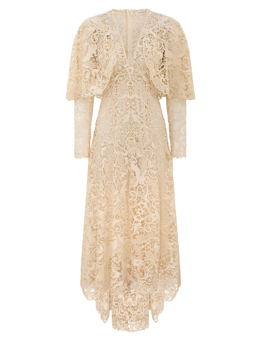 ITEM DETAILS The Memento Bird Lace Dress in Cream from our Fall 2025 Collection, Hypnotic. A lace gown featuring a plunging V-neckline, long fitted sleeves and a cropped cape overlay. - All-over lace fabric - Long sleeves with scalloped edges and zip cuffs - Fitted bodice - Cropped cape overlay across sleeves and centre back - Invisible zip closure at centre back - Comes with a separate slip Runway: This style was featured on the F25 Runway. Style Code: 5235DF252 SIZE DETAILS 0P 0 1 2 3 4 Length 51 56.5 57 57 57.5 58 Bust 15.5 18 20.5 22 24.5 26 Waist 26 27.5 29 31.5 33 35.5 Sleeve 22 23 23.5 23.5 23.5 23.5 Slightly fitted at the bust and waist, loose at the hip This garment fits true to size Available in size 0P, suited to clients who are under 5'3"/ 160cm Model is 5'9.5"/178 cm, bust size 32C/10C and wears a size 0 Item measurements are in inches CARE INSTRUCTIONS Main: 100% polyester; slip: 100% viscose Dry clean only code f (hydrocarbon only); Remove any detachable trims prior to dry cleaning; Cover to protect trim; Do not steam; Cool iron with protective cloth; Do not spot clean Dry clean only code f (hydrocarbon only) cover to protect trim cool iron with protective cloth do not spot clean; Always check the label or care card for specific care instructions.