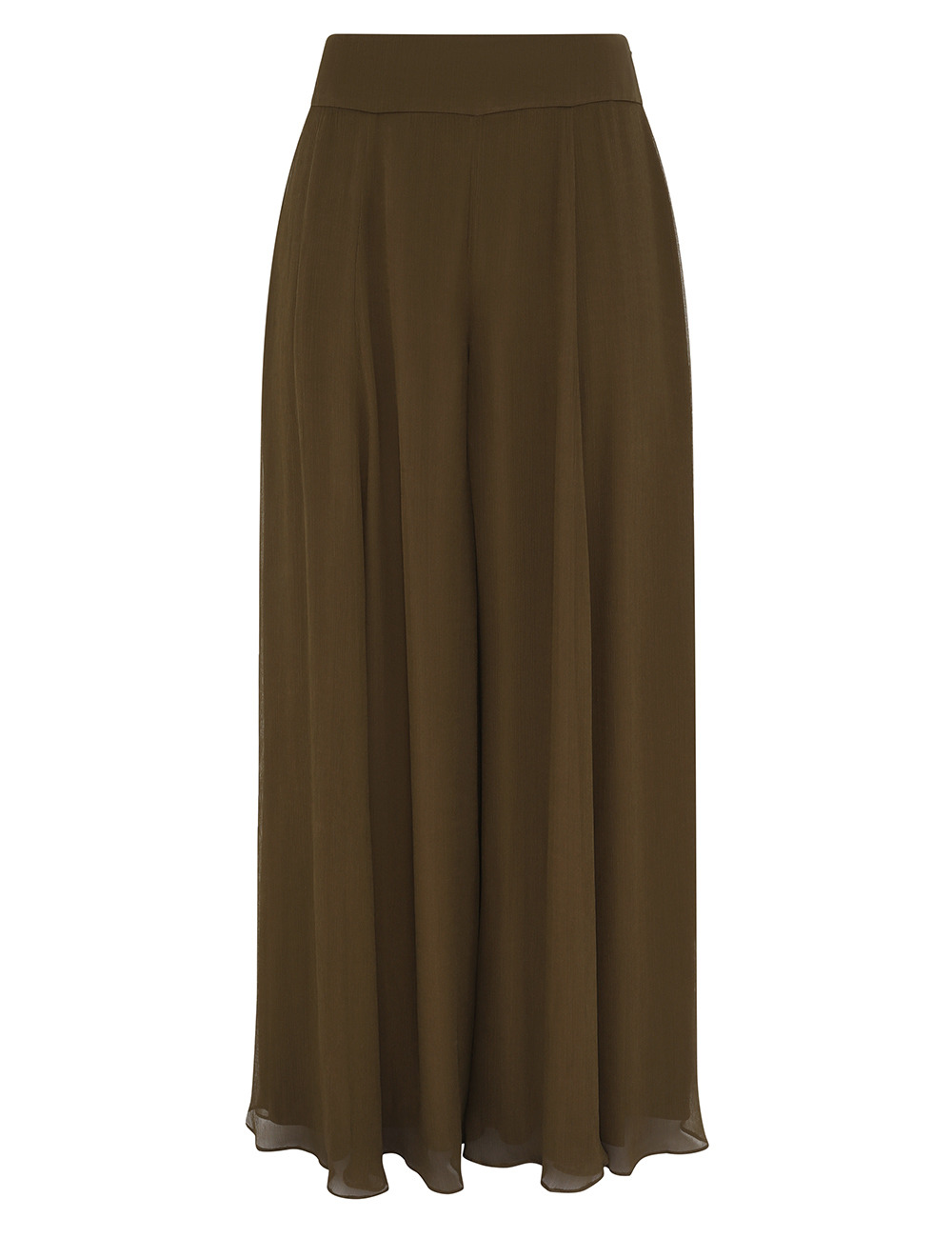 ITEM DETAILS The Memento Flare Culotte in Moss from our Fall 2025 Collection, Hypnotic. A wide leg culotte featuring a fitted waistband and side seam zip. - Mid-rise, wide leg pant - Invisible side seam zip with hook and eye - Front and back tucks - Heavily gathered Style Code: 5255PF252 SIZE DETAILS 0P 0 1 2 3 4 Length 34.5 38 38.5 39 39 39.5 Waist 25 26 28.5 30.5 32.5 34.5 Hip 37 38.5 41 43.5 45 47 Inseam 23.5 26.5 26.5 26.5 26.5 26.5 Fitted at the waist, relaxed through the hips and legs This garment fits true to size Available in size 0P, suited to clients who are under 5'3"/ 160cm Model is 5'9.5"/178 cm, bust size 32C/10C and wears a size 0 Item measurements are in inches CARE INSTRUCTIONS Main: 100% viscose; lining: 100% viscose Dry clean only code f (hydrocarbon only); Remove any detachable trims prior to dry cleaning; Cover to protect trim; Cool iron with protective cloth; Light steam only; Do not spot clean Always check the label or care card for specific care instructions.