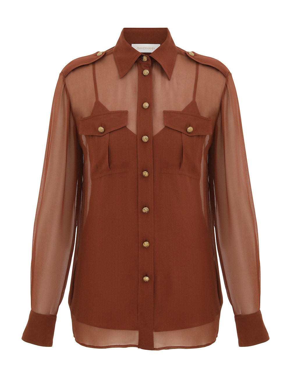 ITEM DETAILS The Memento Pocket Shirt in Tan from our Fall 2025 Collection, Hypnotic. A silk shirt featuring a classic collar, buttons down the centre front, finished with front chest pockets. - 100% silk fabric - Sheer style shirt with classic collar - Long sleeves with buttoned cuffs - Functional gold buttons down centre front opening - Shoulder tabs - Chest flap pockets - Asymmetrical hem - Comes with a separate cami Style Code: 6125TF252 SIZE DETAILS 0P 0 1 2 3 4 Length 25.5 28 28.5 28.5 28.5 28.5 Bust 40 41.5 44 46.5 48 50.5 Waist 37 39.5 41 43.5 45 47 Sleeve 19.5 21.5 21.5 22 22 22.5 Designed for a slightly loose fit, with a closer fit at the bust This garment fits true to size Available in size 0P, suited to clients who are under 5'3"/ 160cm Model is 5'9.5"/178 cm, bust size 32C/10C and wears a size 0 Item measurements are in inches CARE INSTRUCTIONS Main: 100% silk; slip: 100% viscose Dry clean only code f (hydrocarbon only); Remove any detachable trims prior to dry cleaning; Cover to protect trim; Cool iron with protective cloth; Light steam only; Do not spot clean Dry clean only code f (hydrocarbon only); Cover to protect trim; Cool iron with protective cloth; Do not spot clean ; Always check the label or care card for specific care instructions.