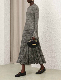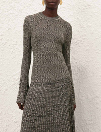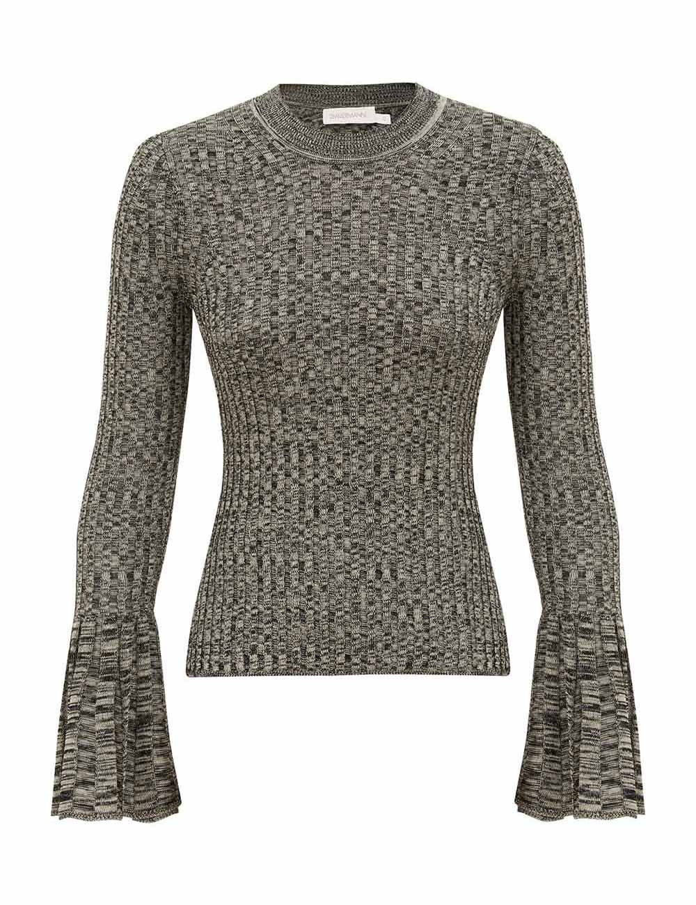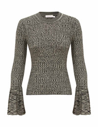 ITEM DETAILS The Mouline Bell Sleeve Sweater in Black Multi from our Fall 2025 Collection, Hypnotic. A knit sweater featuring a round neckline, long bell sleeves with wide cuffs and an all-over ribbed texture. - Knit sweater - Long fitted sleeves with flared cuffs - Ribbed texture throughout - Slip on style Style Code: 4860TF25R SIZE DETAILS 0P 0 1 2 3 4 Length 51 55 56 57 57 58 Bust 64 68 74 80 86 90 Waist 52 58 64 68 74 78 Sleeve 58 62 63 64 64 65 Designed for a close fit This garment fits true to size Available in size 0P, suited to clients who are under 5'3"/ 160cm Model is 5'9.5"/178 cm, bust size 32C/10C and wears a size 0 Item measurements have been rounded to the nearest cm CARE INSTRUCTIONS 100% viscose Dry clean only code f (hydrocarbon only); Remove any detachable trims prior to dry cleaning; Cover to protect trim; Cool iron with protective cloth; Do not spot clean; Store garment flat do not hang Always check the label or care card for specific care instructions.