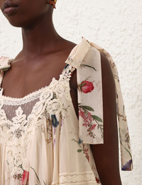 ITEM DETAILS The Patience Cami Top in Vanilla Floral from our Resort Swim 2026 Collection. A cotton-silk blend top featuring a square neckline, bow tie straps, finished with an asymmetric hem and lace trim throughout. - Cotton-silk blend top - High-low style cami - Spliced bodice with lace trim - Fabric tie straps - Elasticated scooped back - Lace detailing - Gathered Style Code: 5582TRS264 SIZE DETAILS 0P 0 1 2 3 4 Length 17.5 19 19 19 19 19 Designed for a relaxed fit This garment fits true to size Available in size 0P, suited to clients who are under 5'3"/ 160cm Model is 5'9.5"/178 cm, bust size 32C/10C and wears a size 0 Item measurements are in inches CARE INSTRUCTIONS Main: 77% cotton, 23% silk; contrast: 100% polyester; lining: 100% viscose; lace: 100% polyester; lace 2: 100% cotton Dry clean only code f (hydrocarbon only); Remove any detachable trims prior to dry cleaning; Cover to protect trim; Iron in low temperature with protective cloth; Light steam only; Do not spot clean Always check the label or care card for specific care instructions.