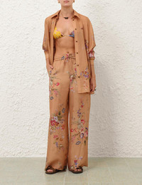 ITEM DETAILS The Patience Relaxed Pant in Tan Floral from our Resort Swim 2026 Collection. A silk habutae mid-rise pant featuring a relaxed silhouette, bold placement print and a drawstring waist. - 100% silk habutae fabric - Shirred waist with self-rouleau tie - Mid-rise, full-length pant - Wide hem - Functional side pockets - Lined Style Code: 6251PRS264 SIZE DETAILS 0P 0 1 2 3 4 Length 38 41 41.5 41.5 41.5 42 Waist 25 26 28.5 30.5 32.5 34.5 Hip 40 41.5 44 45.5 48 49.5 Inseam 27 29.5 29.5 29.5 29.5 29.5 Designed for a relaxed fit Light-weight, non-stretchy fabric Mid-rise waist with a full-length leg This garment fits true to size Available in size 0P, suited to clients who are under 5'3"/ 160cm Model is 5'9.5"/178 cm, bust size 32C/10C and wears a size 0 Item measurements are in inches CARE INSTRUCTIONS Main: 100% silk; lining: 100% silk; pocketing: 100% silk Dry clean only code f (hydrocarbon only); Remove any detachable trims prior to dry cleaning; Cover to protect trim; Iron in low temperature with protective cloth; Light steam only; Do not spot clean Always check the label or care card for specific care instructions.