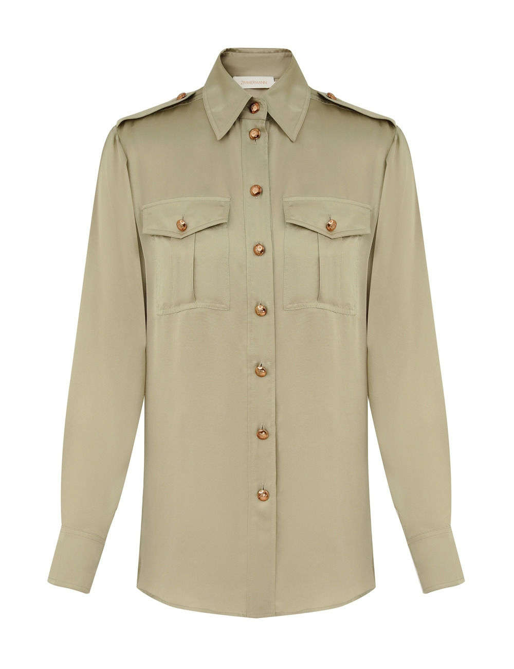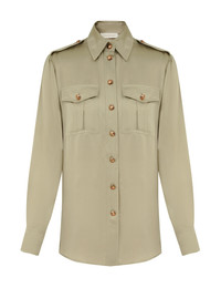 ITEM DETAILS The Pocket Shirt in Khaki from our Cruise 2026 Collection, Twisted Romance. A long sleeve silk shirt featuring a classic collar, front flap pockets, finished with buttons down the centre front. - 100% silk fabric - Fitted cuffs with button closure - Functional buttons down the centre front - Front chest pockets - Bar tacks at shoulders - Asymmetric hem Style Code: 6359TC26R SIZE DETAILS 0P 0 1 2 3 4 Length 25.5 28 28 28.5 28.5 28.5 Bust 39.5 41 43.5 45 47 49 Waist 36 38 40 42.5 44 46.5 Sleeve 19.5 21.5 21.5 21.5 22 22 Designed for a relaxed fit Light-weight, non-stretchy fabric This garment fits true to size Available in size 0P, suited to clients who are under 5'3"/ 160cm Model is 5'9.5"/178 cm, bust size 32C/10C and wears a size 0 Item measurements are in inches CARE INSTRUCTIONS Main: 100% silk Dry clean only code f (hydrocarbon only); Remove any detachable trims prior to dry cleaning; Cover to protect trim; Iron in low temperature with protective cloth; Light steam only; Do not spot clean Always check the label or care card for specific care instructions.