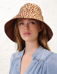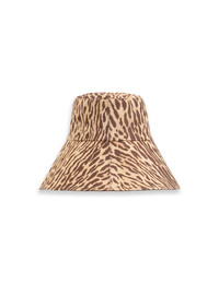 ITEM DETAILS The Printed Long Brim Bucket Hat in Tan Leopard from our Summer Swim 2025 Collection. A linen bucket hat featuring topstitching around the brim and ventilation in the crown. - Linen - Reversible bucket hat - Topstitching - All-over print Style Code: 2708XS25A2 SIZE DETAILS One size.